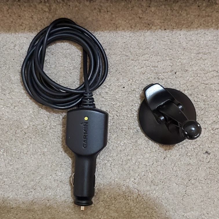 Pre-owned Garmin GPS unit. Includes car charger and suction cup mount, however the pivot for the mount is broken so may need replacement hence the cheaper price. Good working order. Screen shows very little minor wear. Canada and other International maps.