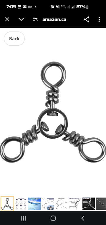 Bulk lot of 3-way fishing swivels. Great for trolling or other fishing applications. Durable metal construction. Quantity shown in image.