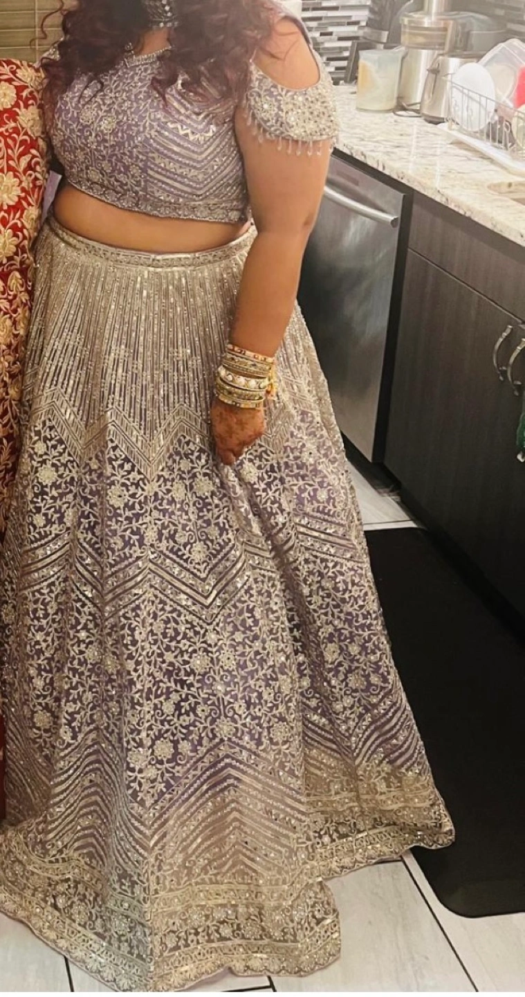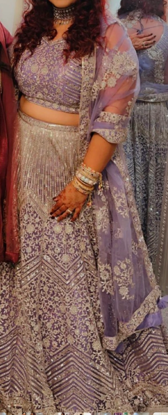 Beautiful lavender lehenga choli. Intricate embroidery and embellishments. Perfect for special occasions. Includes matching dupatta. Stunning colour and design. Just worn once