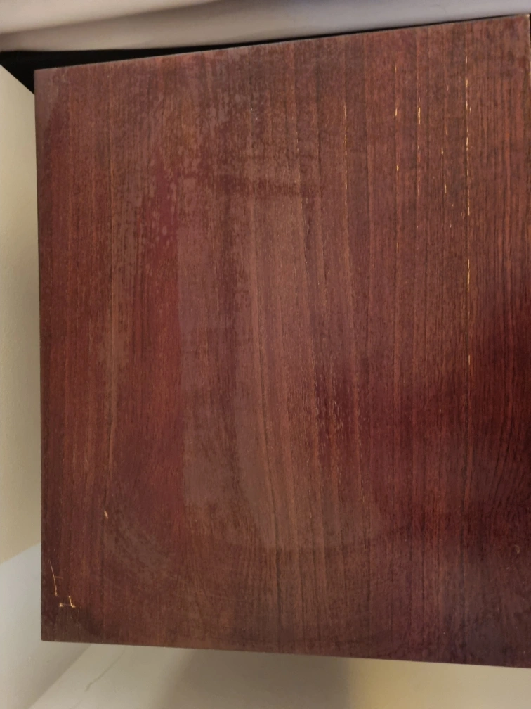Two large nightstands, dark wood finish. One drawer, open shelf below. Minor wear.