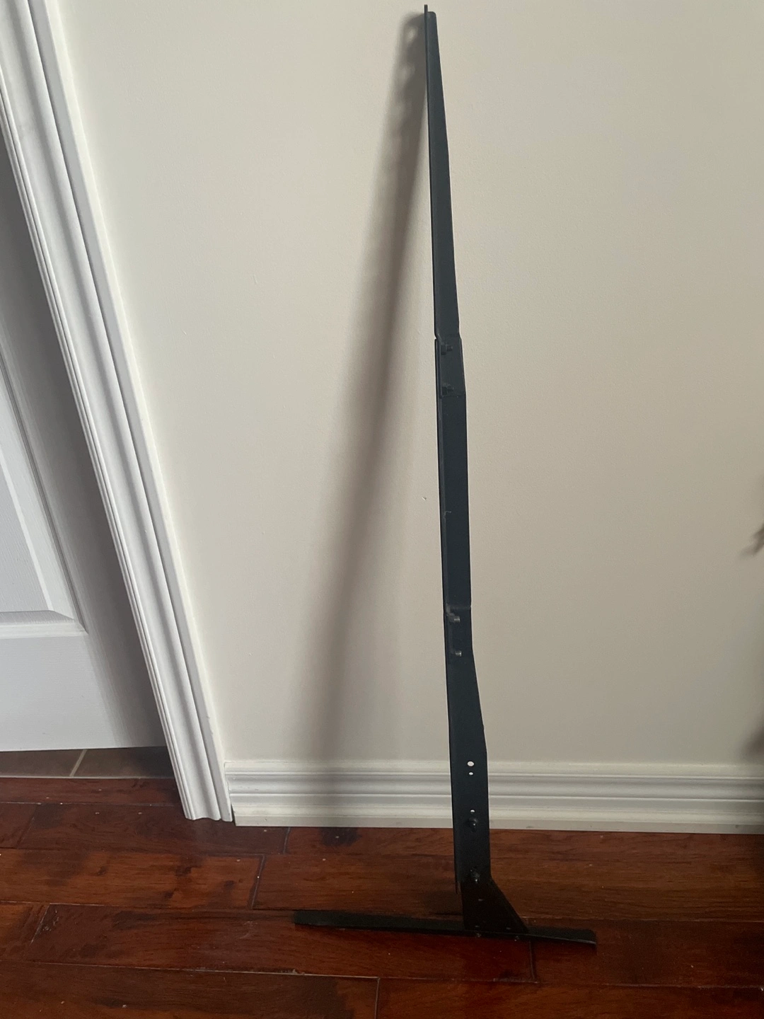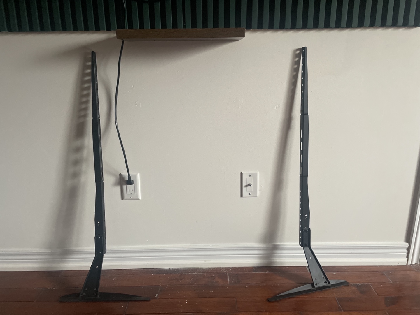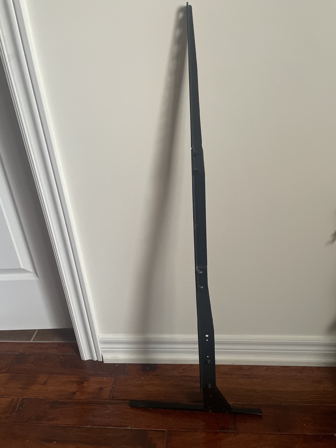 Pair of black metal TV stand legs. Suitable for larger screen TVs. In good condition. Strong heavy duty can fit up-to 55-80 inch / 120 pound TV. Not useful to us as we wall mounted the TV.