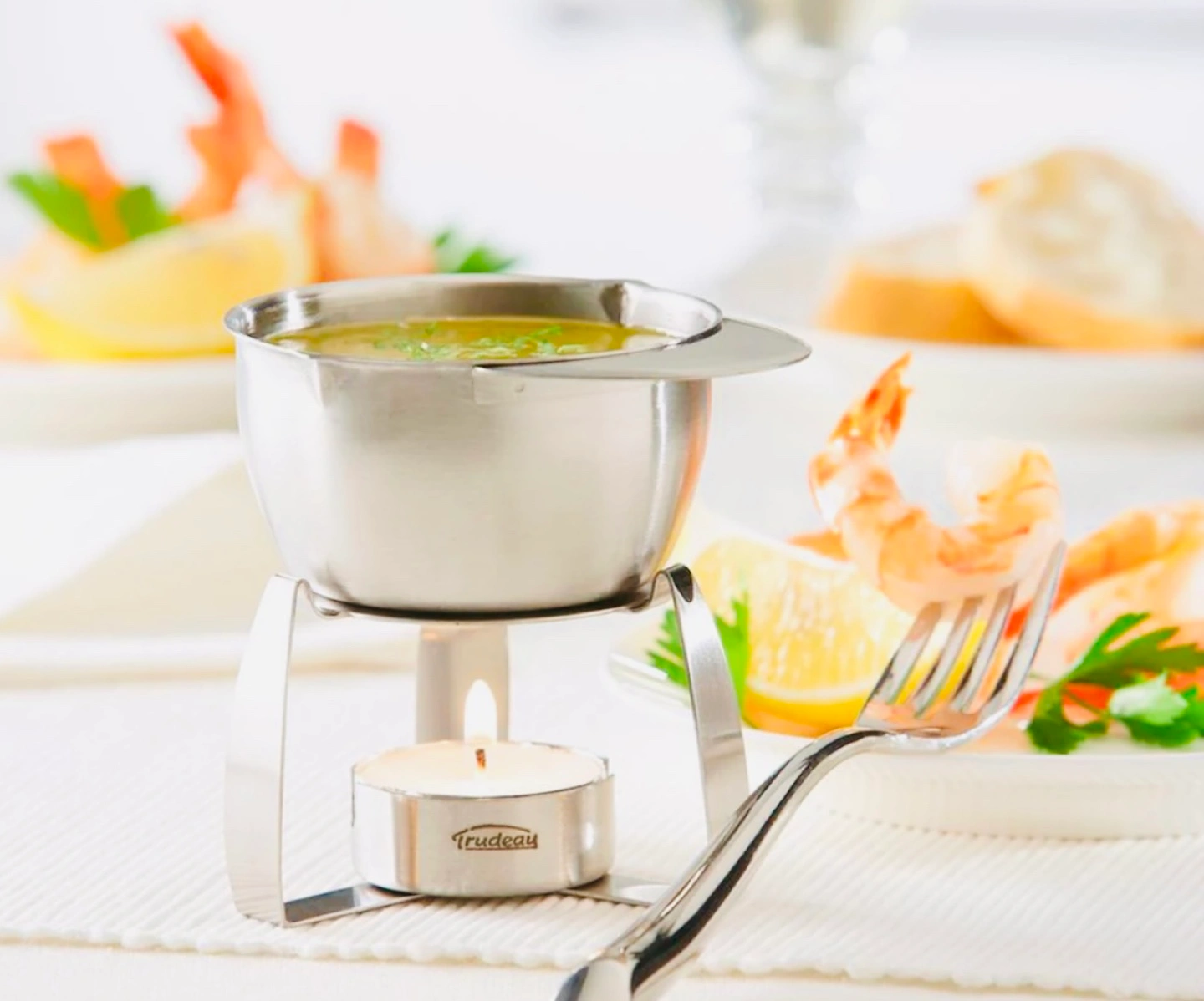 Elevate your dining experience with this Trudeau 4 Oz Butter Warmer, Stainless Steel perfect for melting and serving butter, sauces, or dips. Whether you're indulging in seafood, enjoying popcorn, or creating the perfect drizzle for your dishes, this compact and elegant warmer ensures your butter stays at the ideal temperature. Capacity: 4oz (118mL) Dual-sided spout Tealight included Food safe and BPA-free stainless steel Keeps butter warm for entire meal $2.50 Each (2 Available)