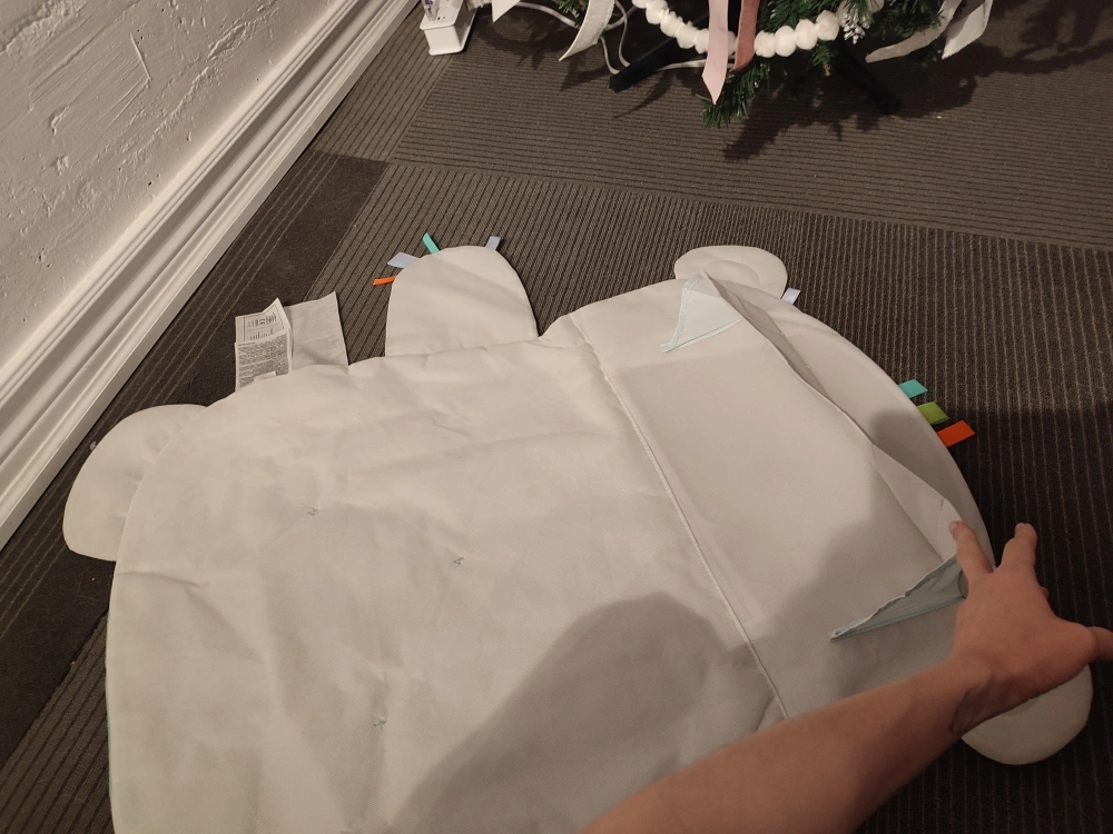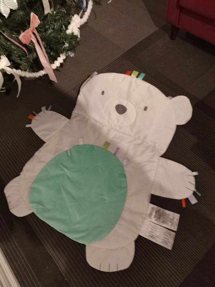 Baby tummy time playmat shaped like a bear. Soft, padded surface. Doesn't include any toys or attachments, mat only. Pickup only near Dupont and Lansdowne intersection