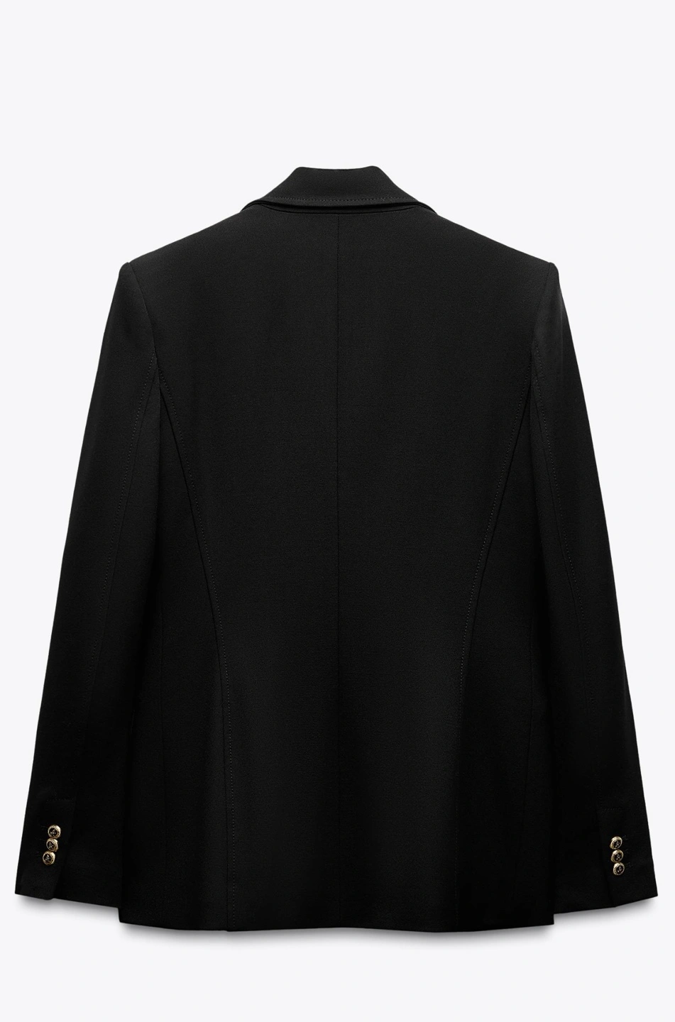 84Women's black blazer. Double breasted. Gold buttons. Structured fit. Great for work or a night out.