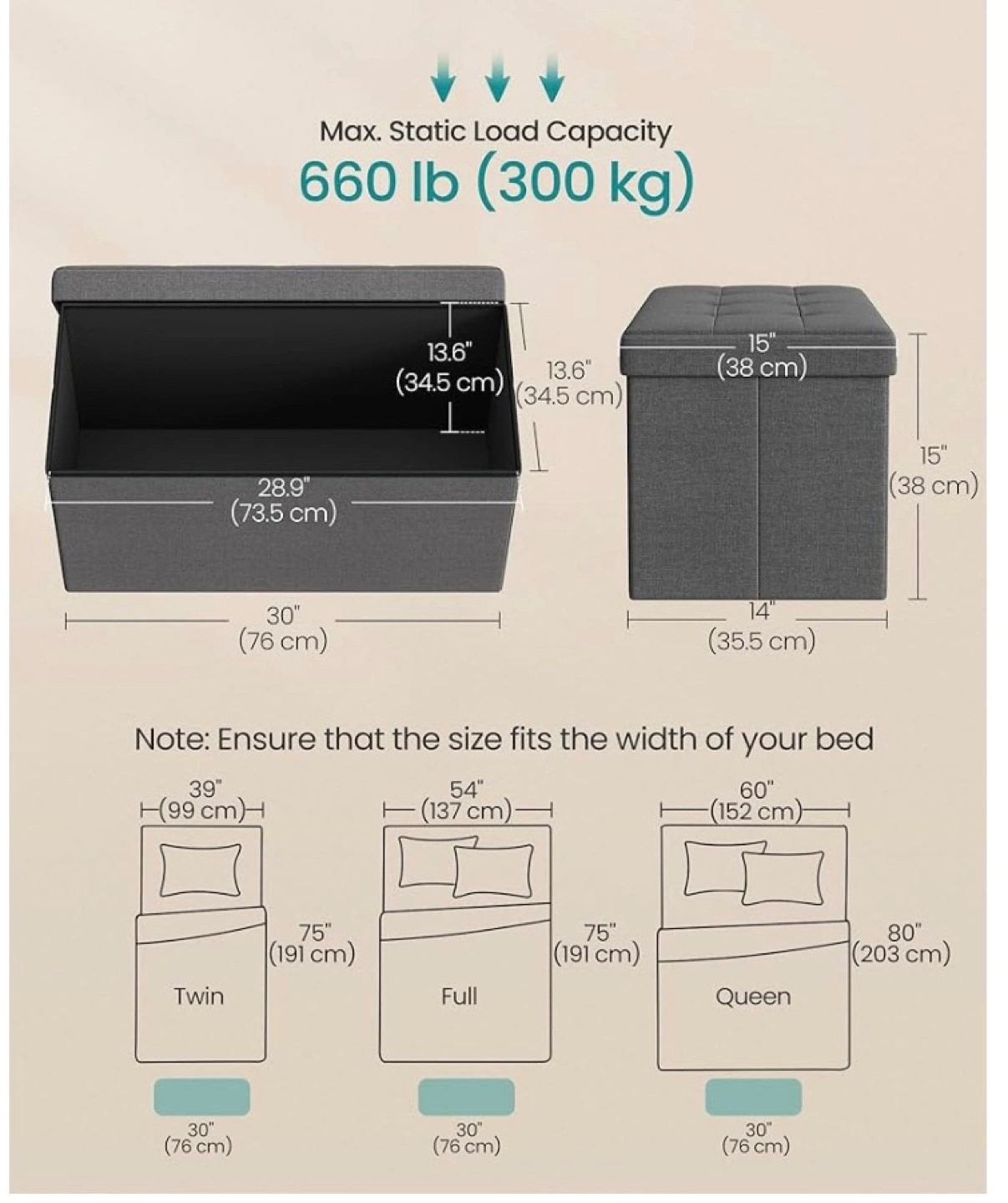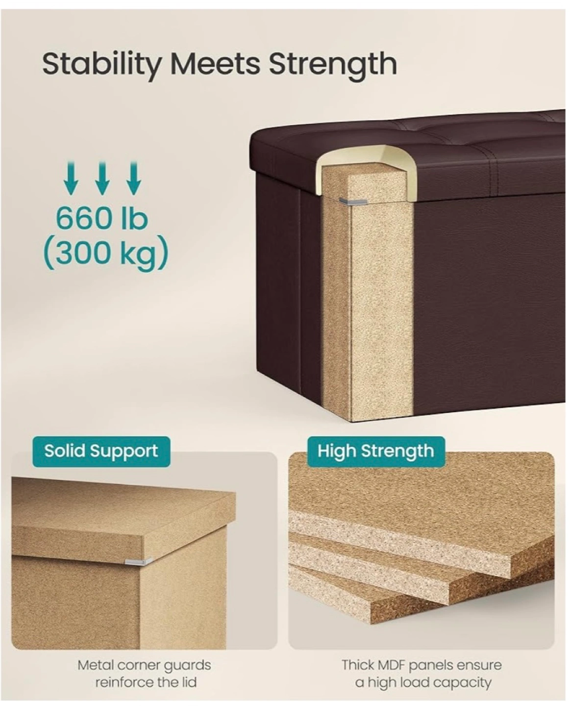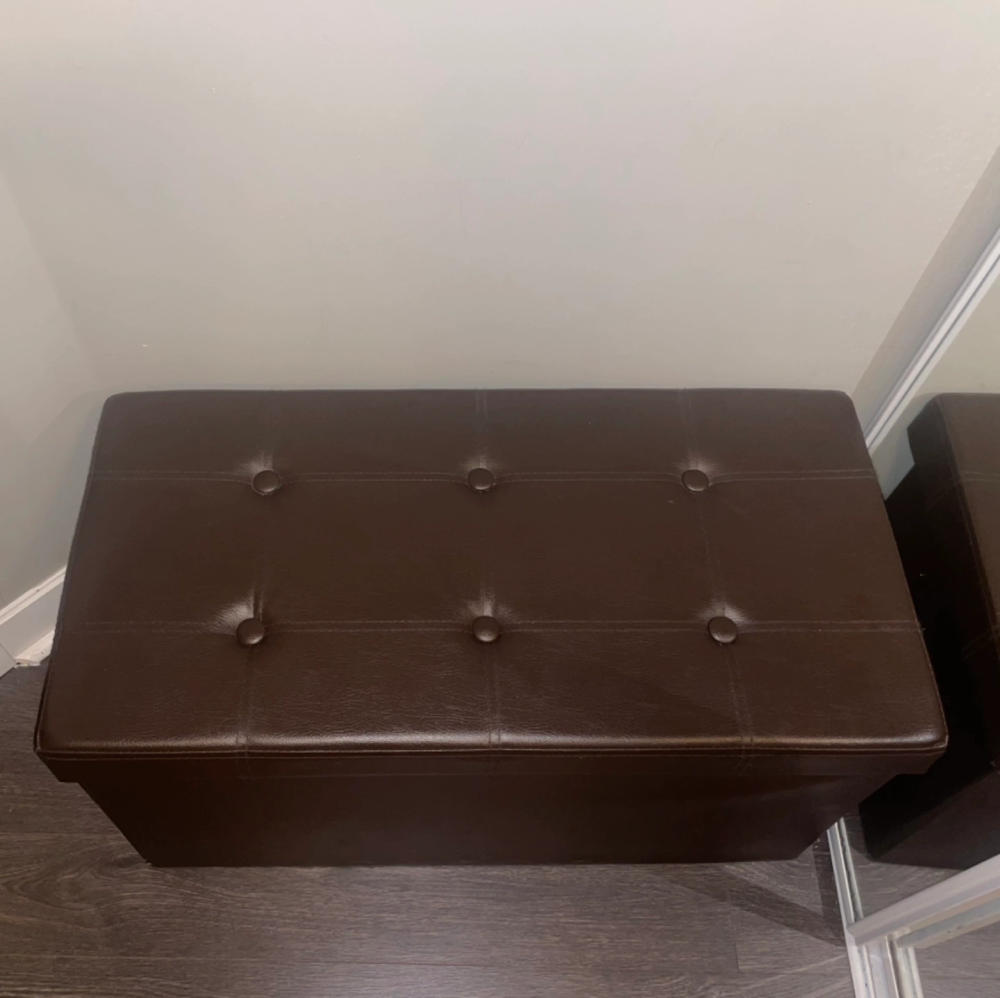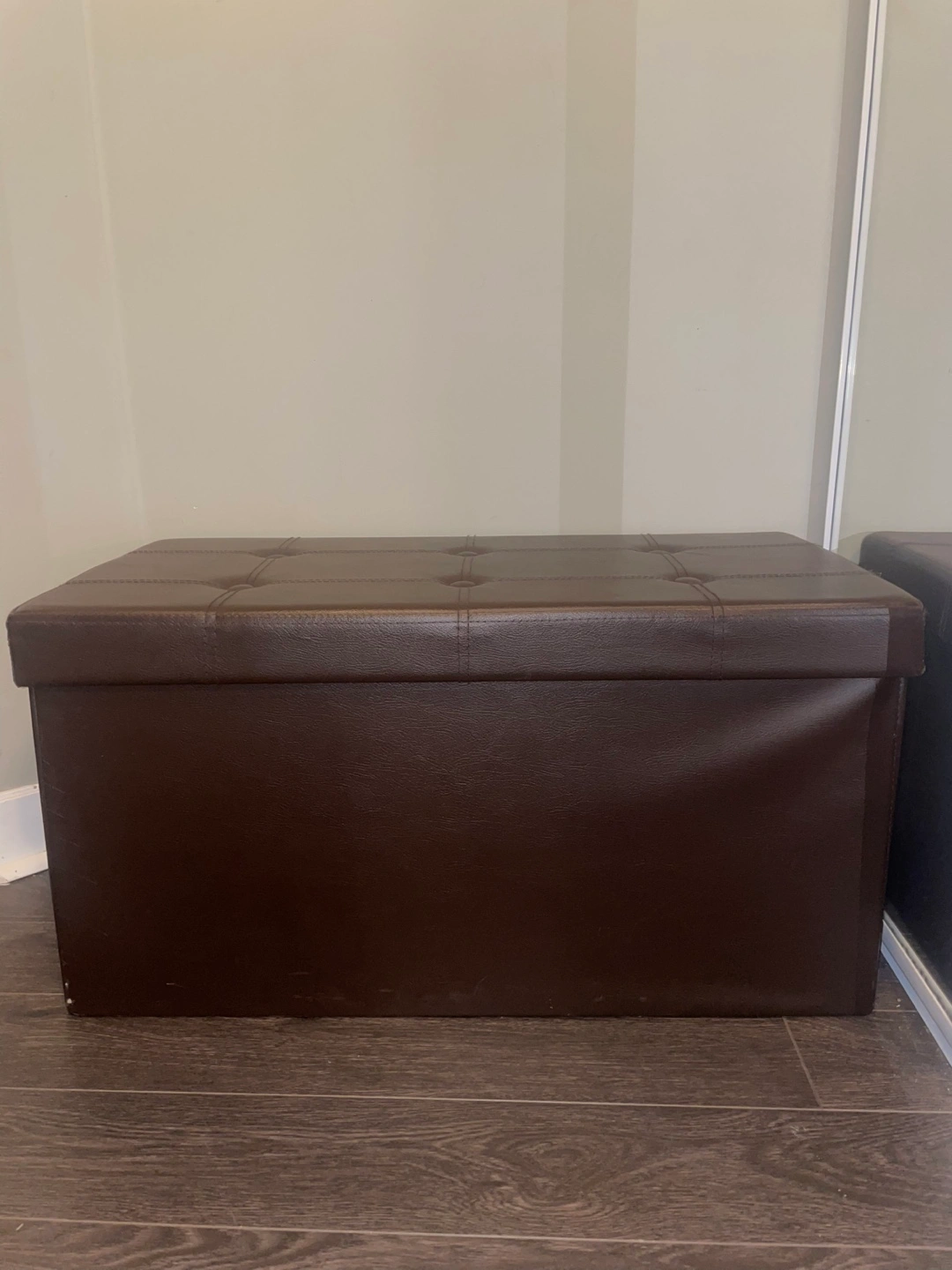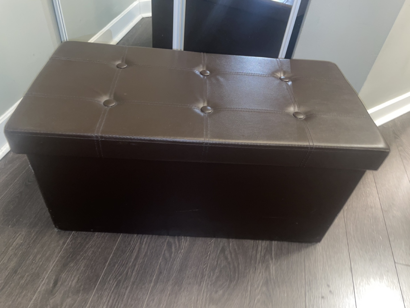 Large storage ottoman. Brown faux leather. Button tufting. Holds 660 lbs. Great for bedrooms or entryways. From SONGMICS and retails for about $79.99 before tax!