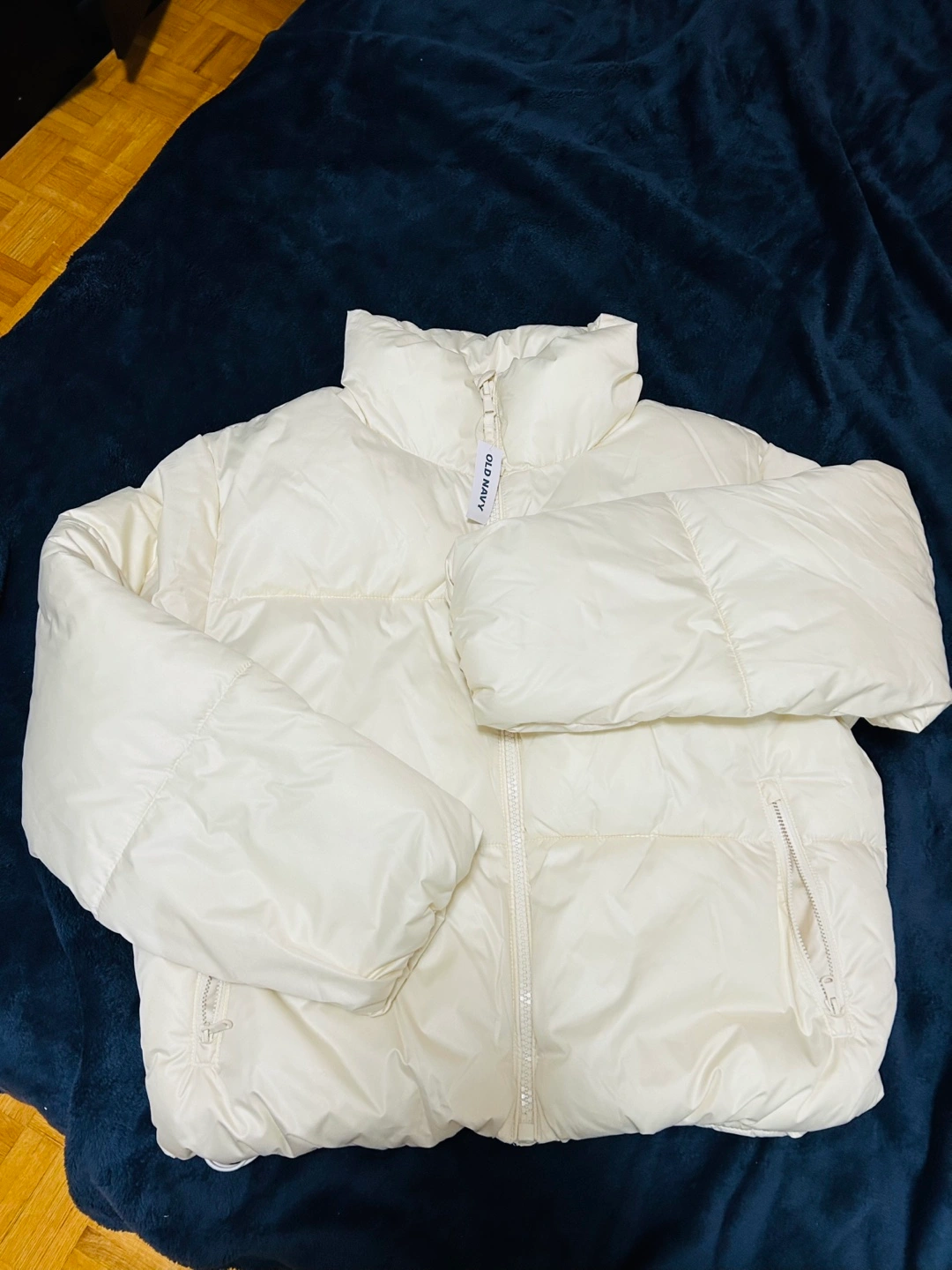 Brand new with tag - Old Navy puffer jacket for women Size M Color - beige Zip closure pockets Fasteners at the bottom Perfect for young girls Cash only Pick up