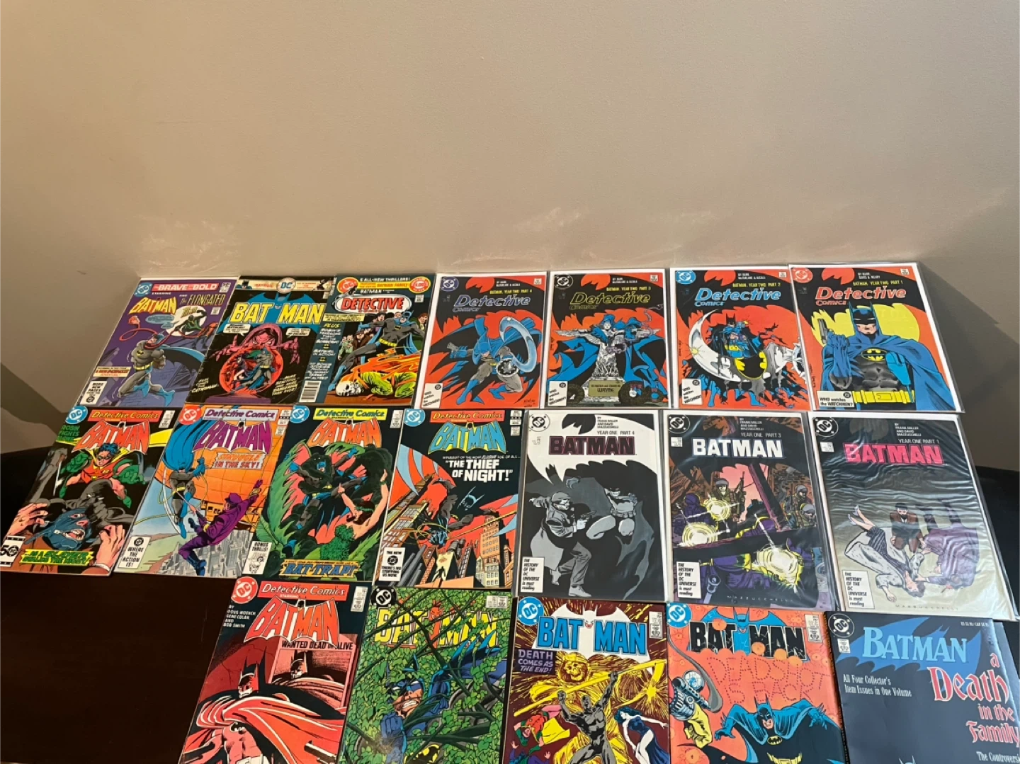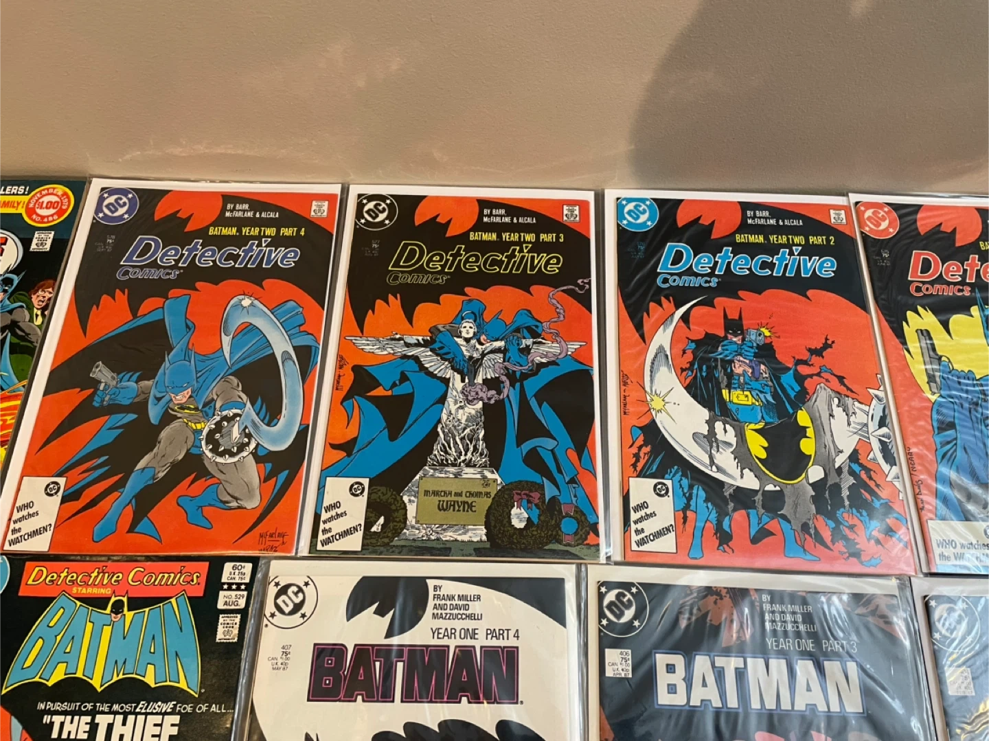 Here's a collection of Detective Comics and Batman comic books. These comics feature iconic storylines like Batman: Year Two and Batman: Year One. They're a great addition for any comic book enthusiast's collection! 1$