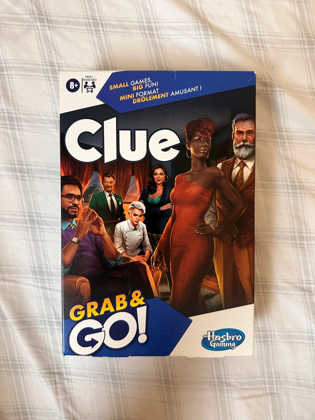This is the Clue Grab & Go! edition board game. It's designed for quick play and easy storage. Includes 6 movers, 6 weapons, 9 rooms, and clue cards.