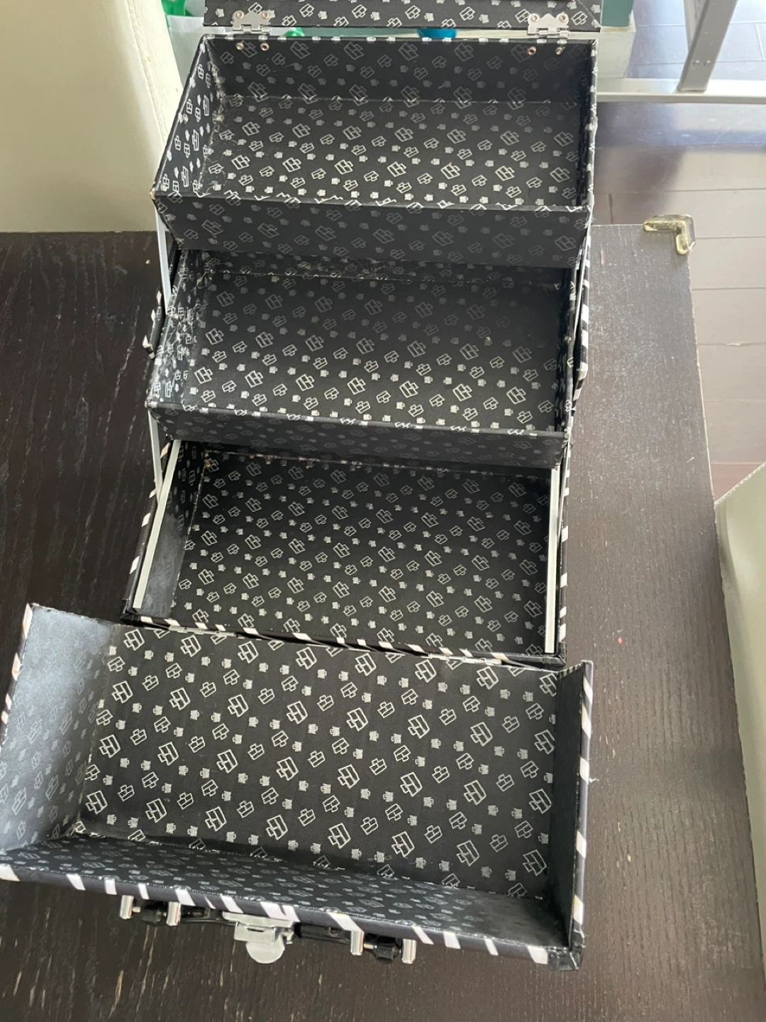 2 cantilever trays | Flip lid with mirror | Carrying handle