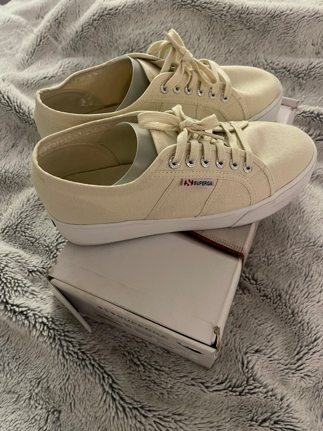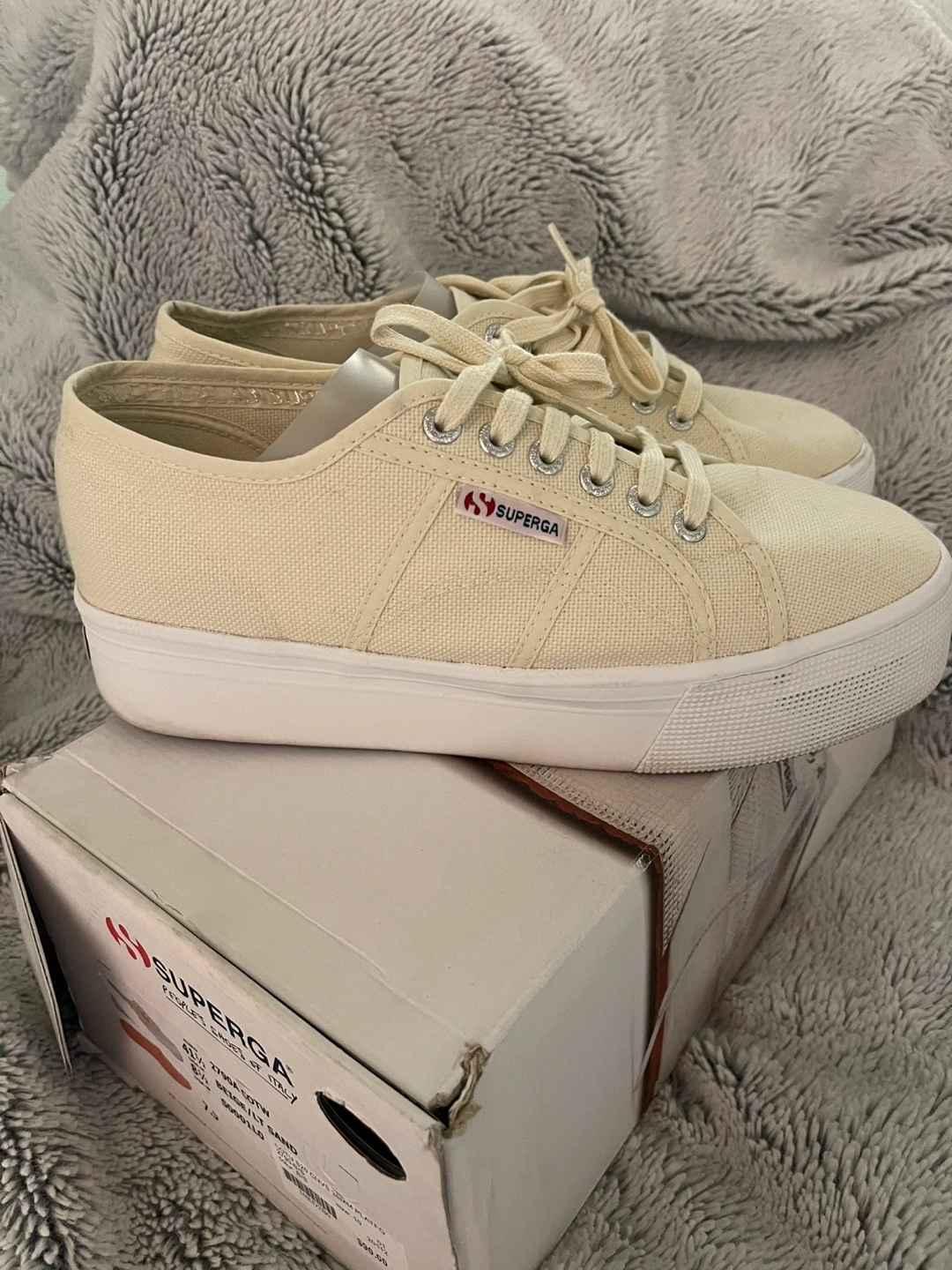Cream coloured Superga platform sneakers. Size 41 1/2. Come with original box.