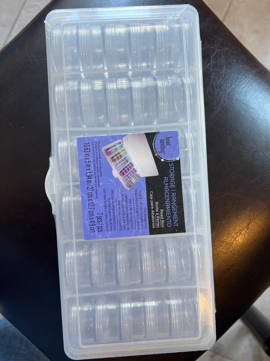 Bead Landing 16-Compartment Bead Storage Box. Clear plastic storage case. Holds sixteen small containers. Ideal for organizing beads and small jewellery findings. brand new, still sealed in the plastic wrap.