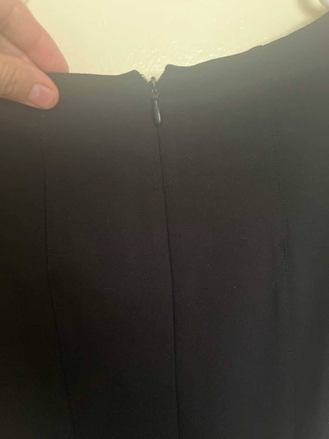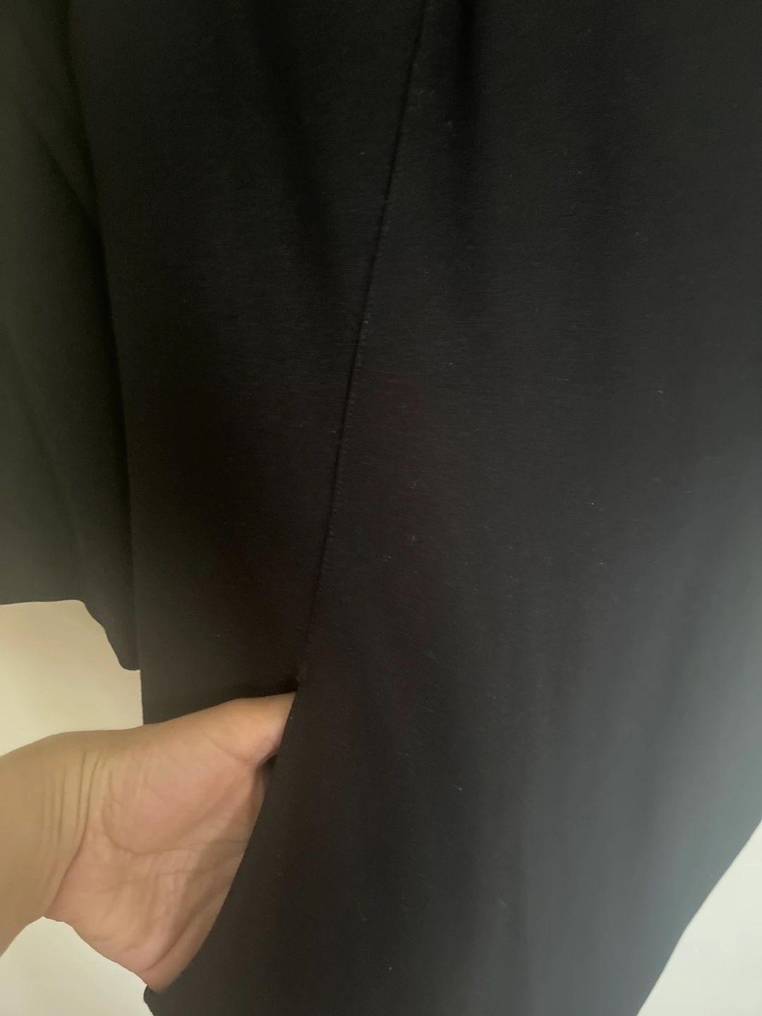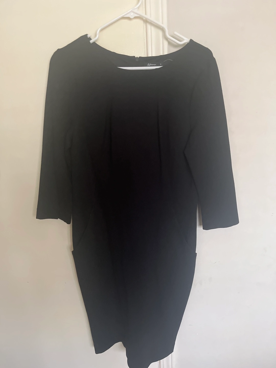 Black dress. Three-quarter sleeves. Back zipper. Side pockets. Size 10.nice and comfortable