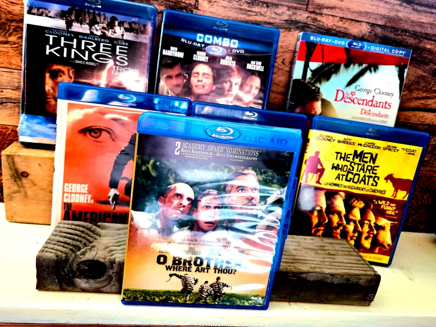 O Brother, Where Art Thou? [Blu-ray] The Men Who Stare at Goats [Blu-ray] Up In The Air [Blu-ray,] The American [Blu-ray] The Descendants [Blu-ray + DVD + Digital Copy] Confessions of a Dangerous Mind [Blu-ray + DVD]