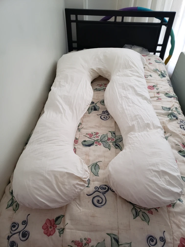 Large white U-shaped pregnancy pillow. Good for sleeping and support. Soft and comfortable. free smoke and pet ..