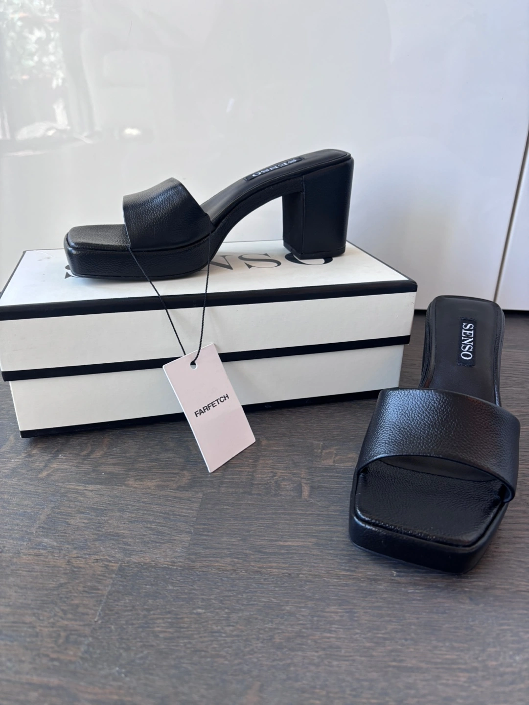 Black leather platform heels. Square toe. Block heel. Size 37. Brand new with box and tags. Purchased for over $200 on Farfetch.
