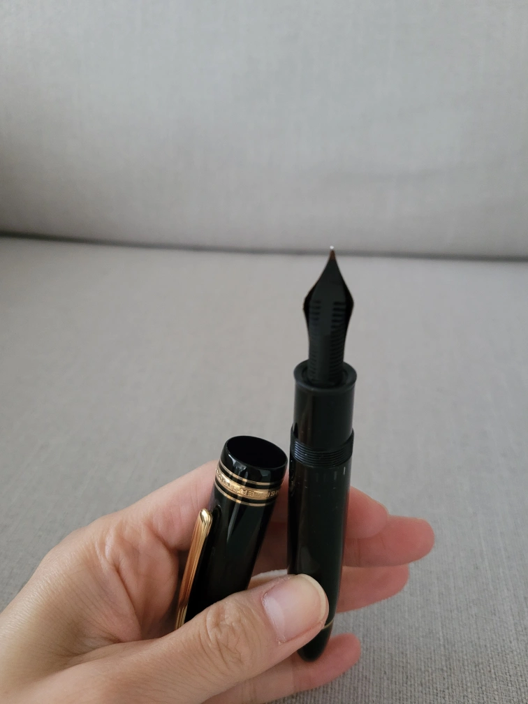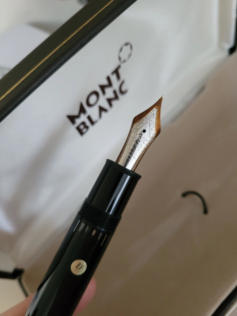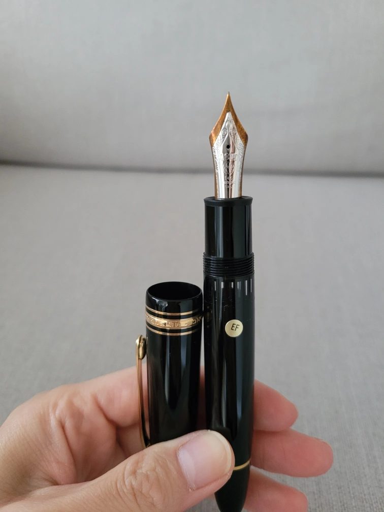 281I received as a gift but never used it. Black resin body, gold-plated accents. Extra fine nib. Comes with original box and paperwork.