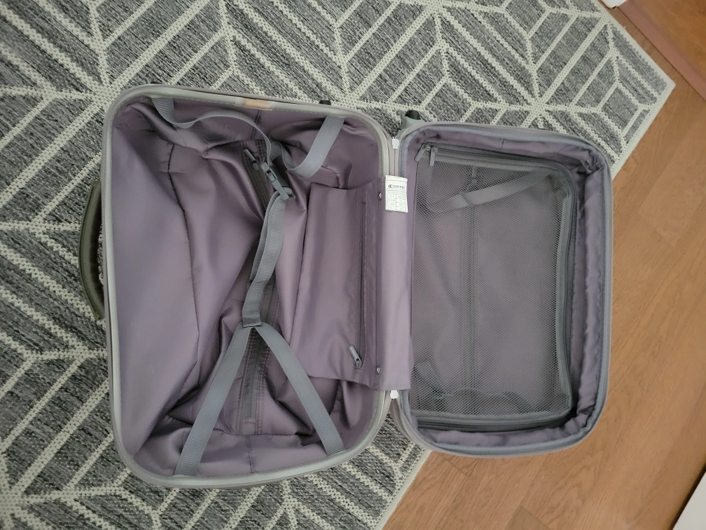 This carryon is made of polycarbonate/abs. The major benefits of this material - it is extremely lightweight, it is durable, and protects the contents of your luggage. Eight multi directional spinner wheels rotate 360 degrees for easy maneuverability. This luggage allows you to pack more while avoiding the excess weight surcharges imposed by most airlines. Multi-directional spinner wheels for easy maneuverability. Modern internal chrome telescoping handle with push button handle. Interior mesh and zip pocket and elastic pocket. 20 inchx13 inchx10 inch