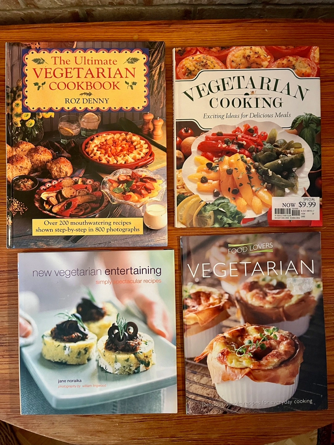 Bundle includes: The Ultimate Vegetarian Cookbook, Vegetarian Cooking: Exciting Ideas for Delicious Meals, New Vegetarian Entertaining: Simply Spectacular Recipes and Vegetarian: Delicious, simple recipes for everyday cooking. Selling as a set - all 4 books for $12.