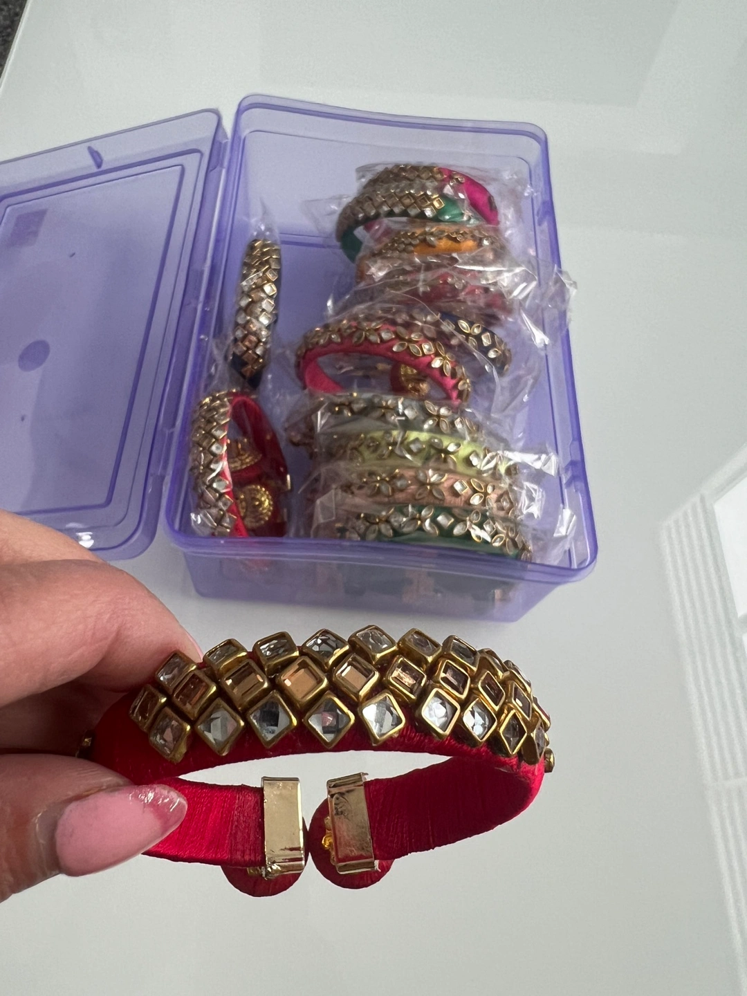 Brand new colourful Set of silk thread bangles. Various colours. Kundan and stone embellishments. Adjustable sizing. Includes additional bangles with dangling charms. Various styles. All together 30 pieces all for $ 22.00