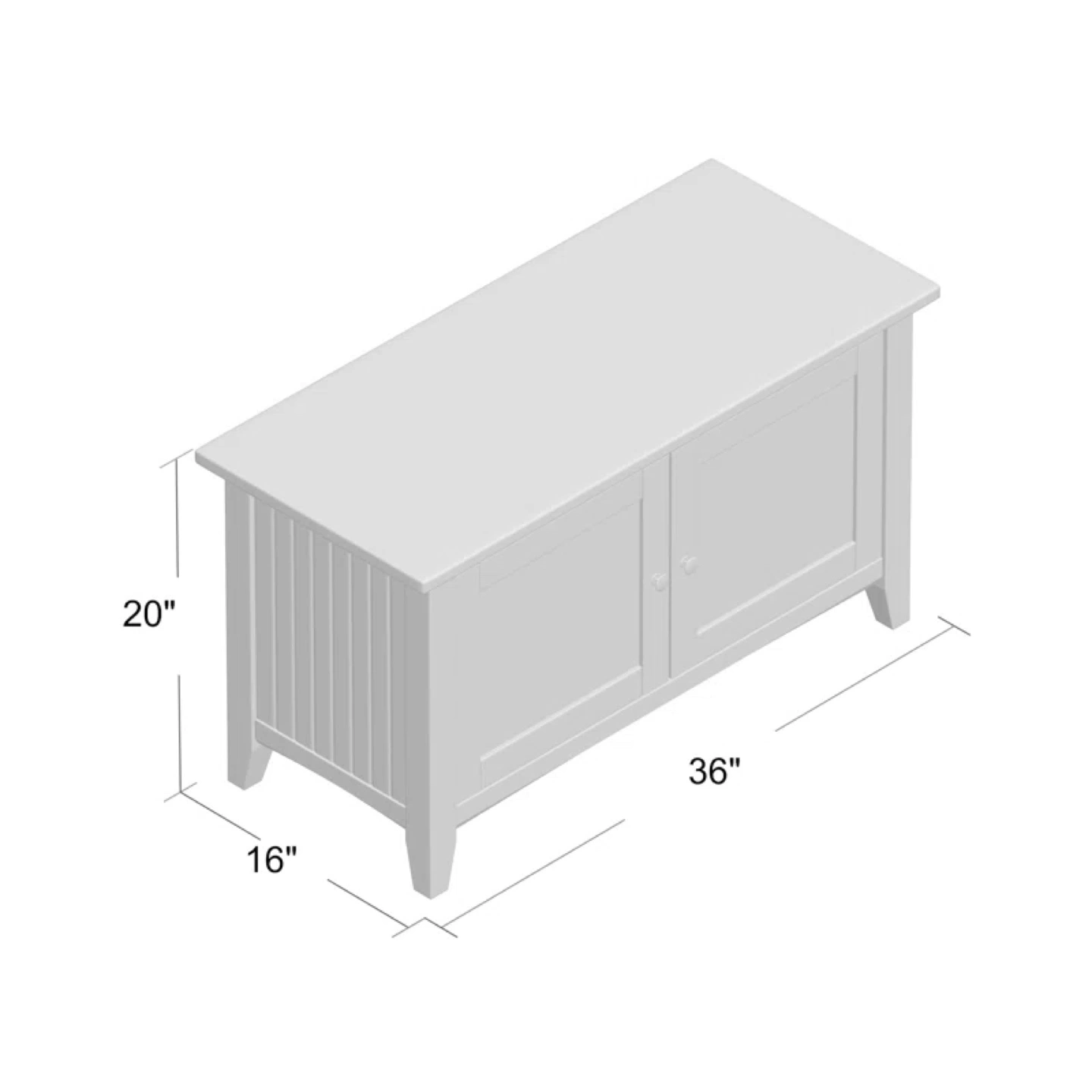 190Overall 36'' W X 16'' D X 20'' H Shelf 6.25'' H X 27.5'' W X 12'' D Cabinet Interior 13.5'' H X 13'' D X 33'' W The TV stand only has one hole at the back for cable management Easy to assemble Remote signals will be able to be generated through closed doors Shelf divider: No Panel detailing on side of stand Coordinates with Alaterre Shaker Cottage collection to create a complete room 1 Adjustable Shelf; Opening in back for cords