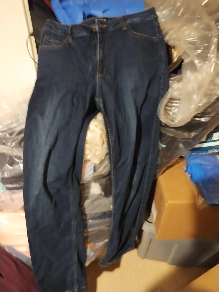 Dark wash denim jeans. Straight leg. Size 10. Made in Bangladesh.