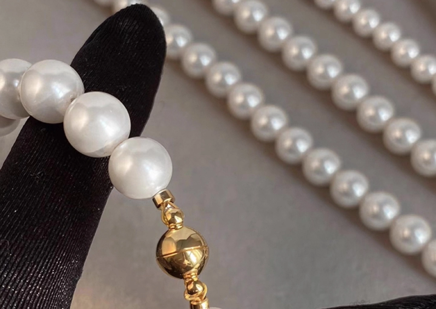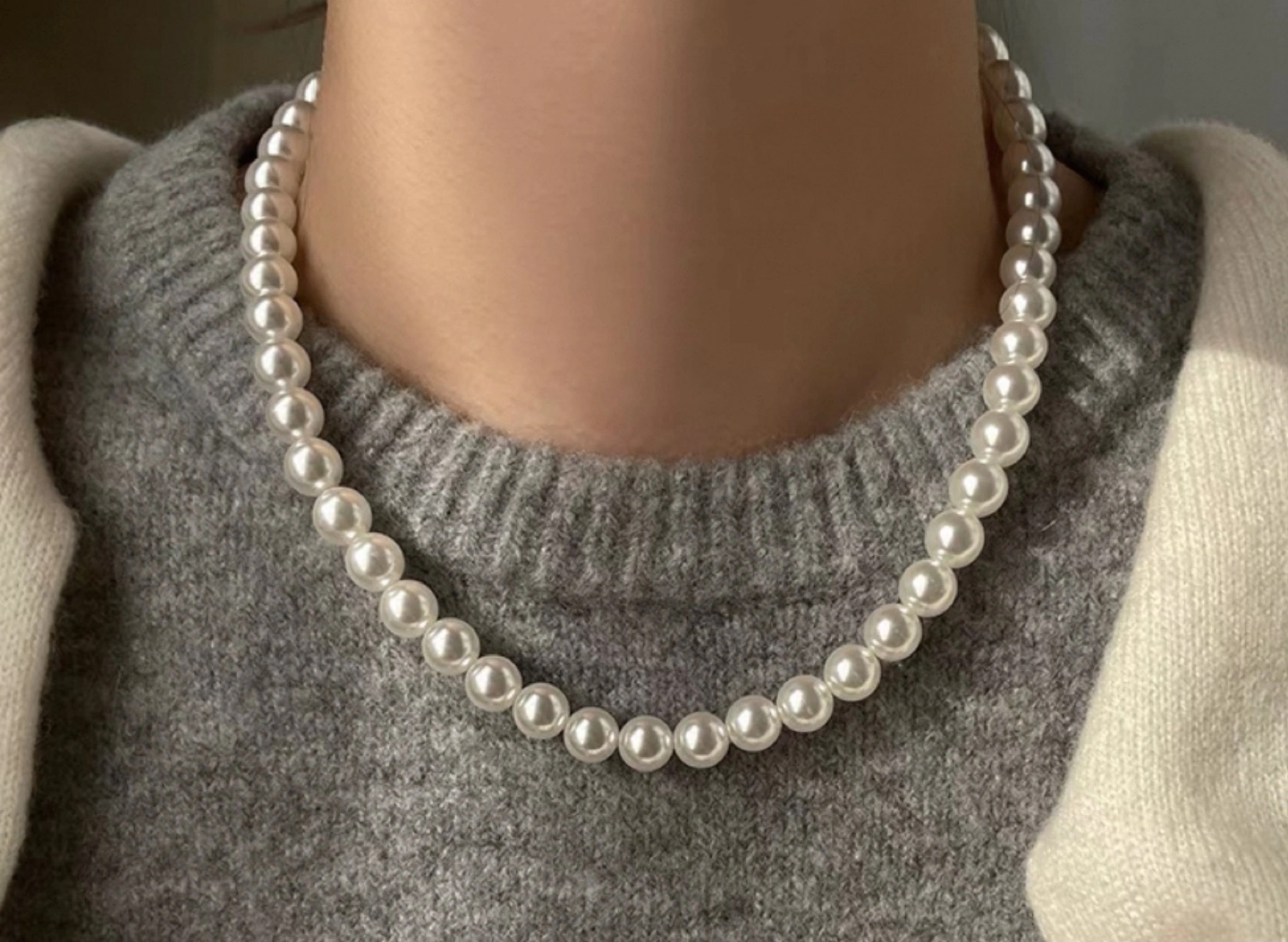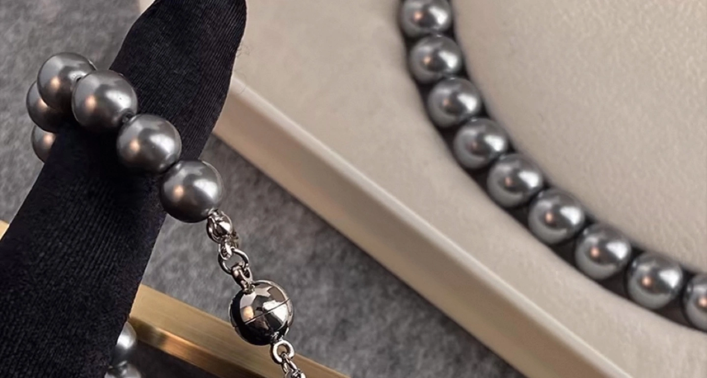 Beautiful pearl necklace (white / grey). Classic design. Magnetic clasp. Perfect for everyday wear or special occasions. Comes in a velvet jewellery box.