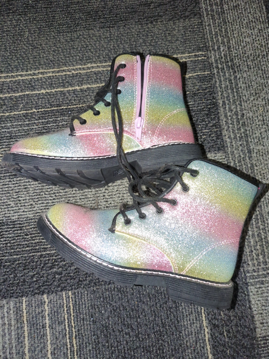 Buy & SellGirls' Rainbow Glitter Boots - Size 2Girls' Rainbow Glitter Boots - Size 2$5justice rainbow glitter boots. Lace-up closure and side zipper. Age6 years and olderWHERE TO MEETTim HortonsView MapSELLERHeatherGibson574 reviews0 chats·0 favorites·3 views