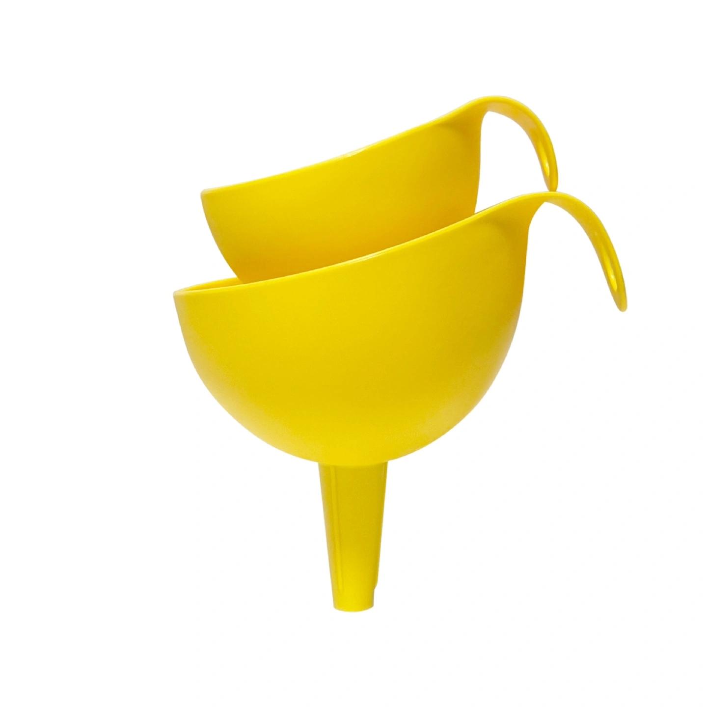 A set of 2 food-grade stackable funnels from IKEA. Glossy finish inside, matte finish outside. Discontinued product, no longer sold at IKEA stores. Rare find. Very good condition. Minor scratches on the inner part. No marks, stains, cracks, or other defects. Come from a smoke-free, pet-free household. All photos are of the actual items, personally taken prior to posting. Colour: Yellow Material: Polypropylene Dimensions: Small 4.3 x 3.5 x 3.5” / 11 x 9 x 9 cm Large 5.5 x 4.7 x 4.7” / 14 x 12 x 12 cm Features: Dishwasher-safe Year: 2013