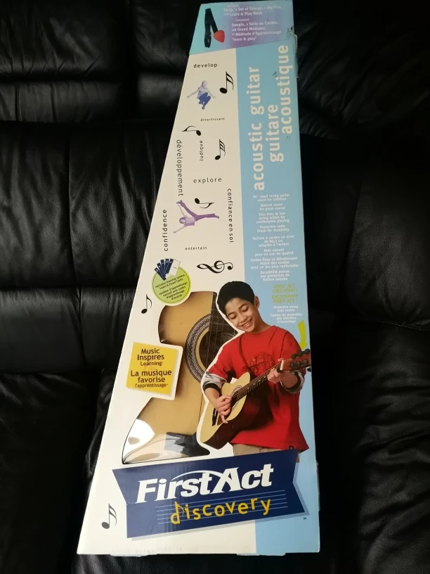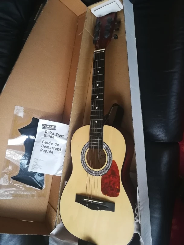 1000+Acoustic 34" steel string guitar for children in original box. Includes a strap and pick. Great for beginners. This is 1/2 size guitar (34"), not full size (40"), recommended for age 6-10 with height 43″ - 55″ (110-140cm) pick up in downtown close to St Patrick station, Dundas-University area or Yonge-Bloor on some evenings