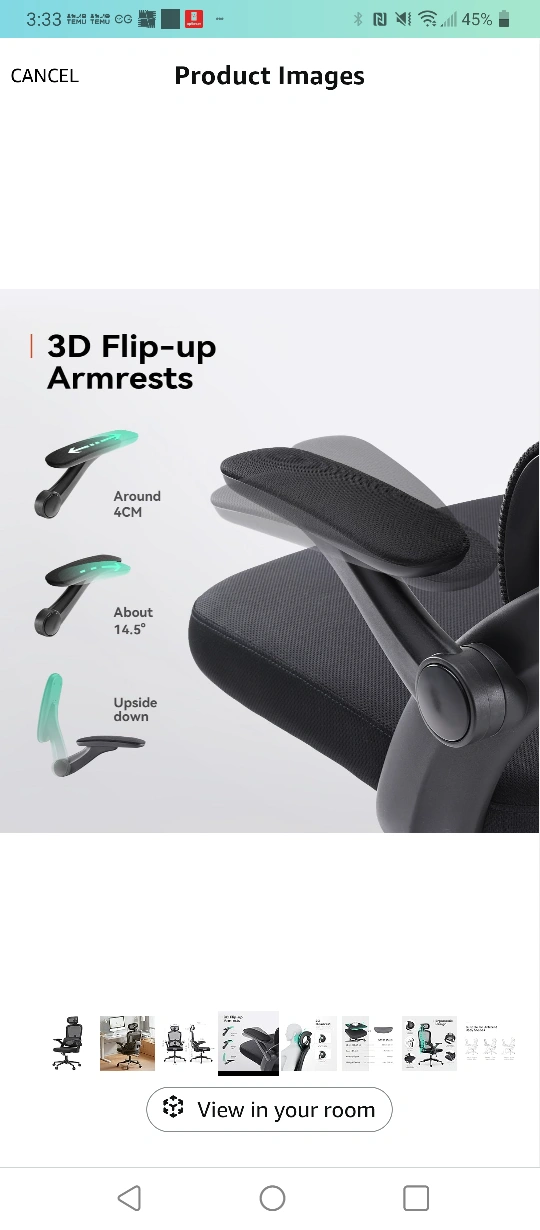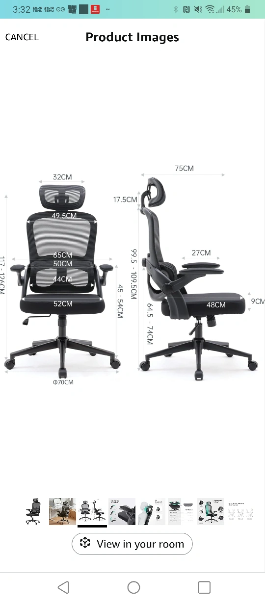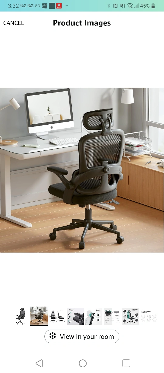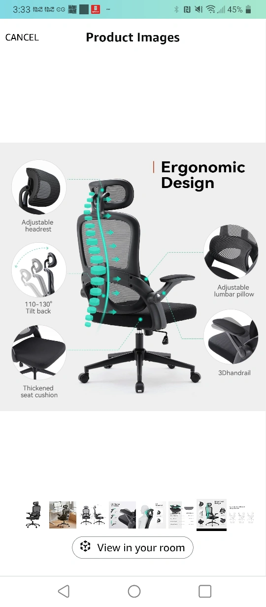 New in box....High-back mesh office chair. Features adjustable headrest, flip-up armrests, and breathable mesh back. Excellent lumbar support. Comfortable and supportive for long work hours. Great for home or office use.