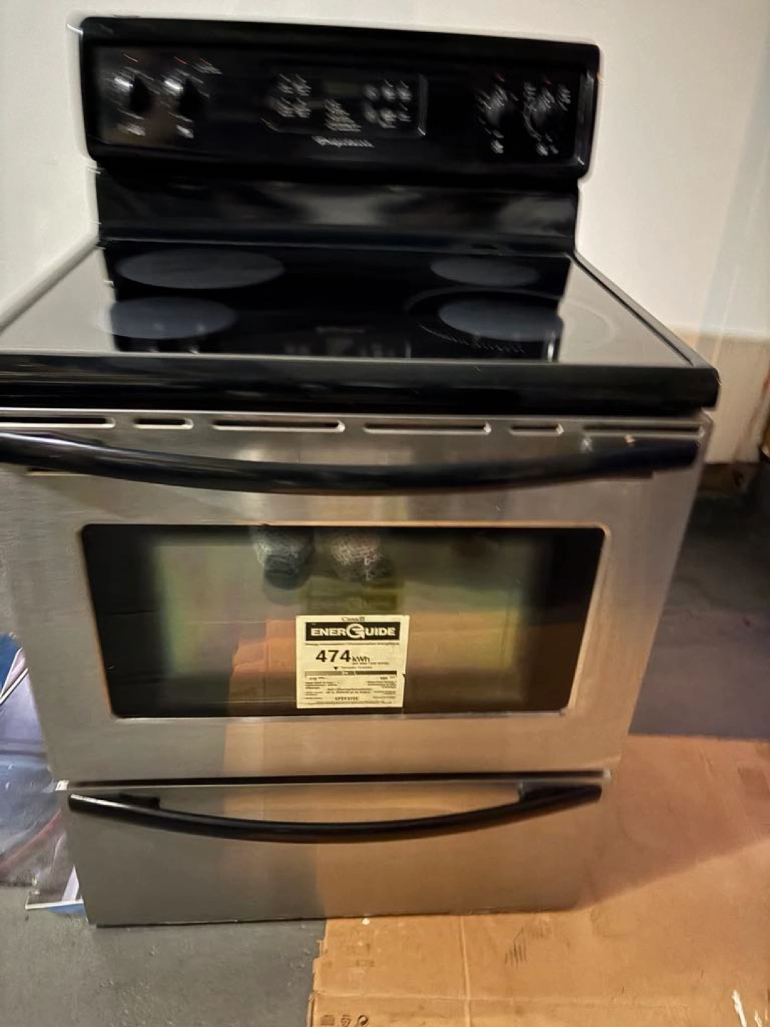 Well maintained. Stainless steel electric range. Four burners, self-cleaning oven. Includes warming drawer.
