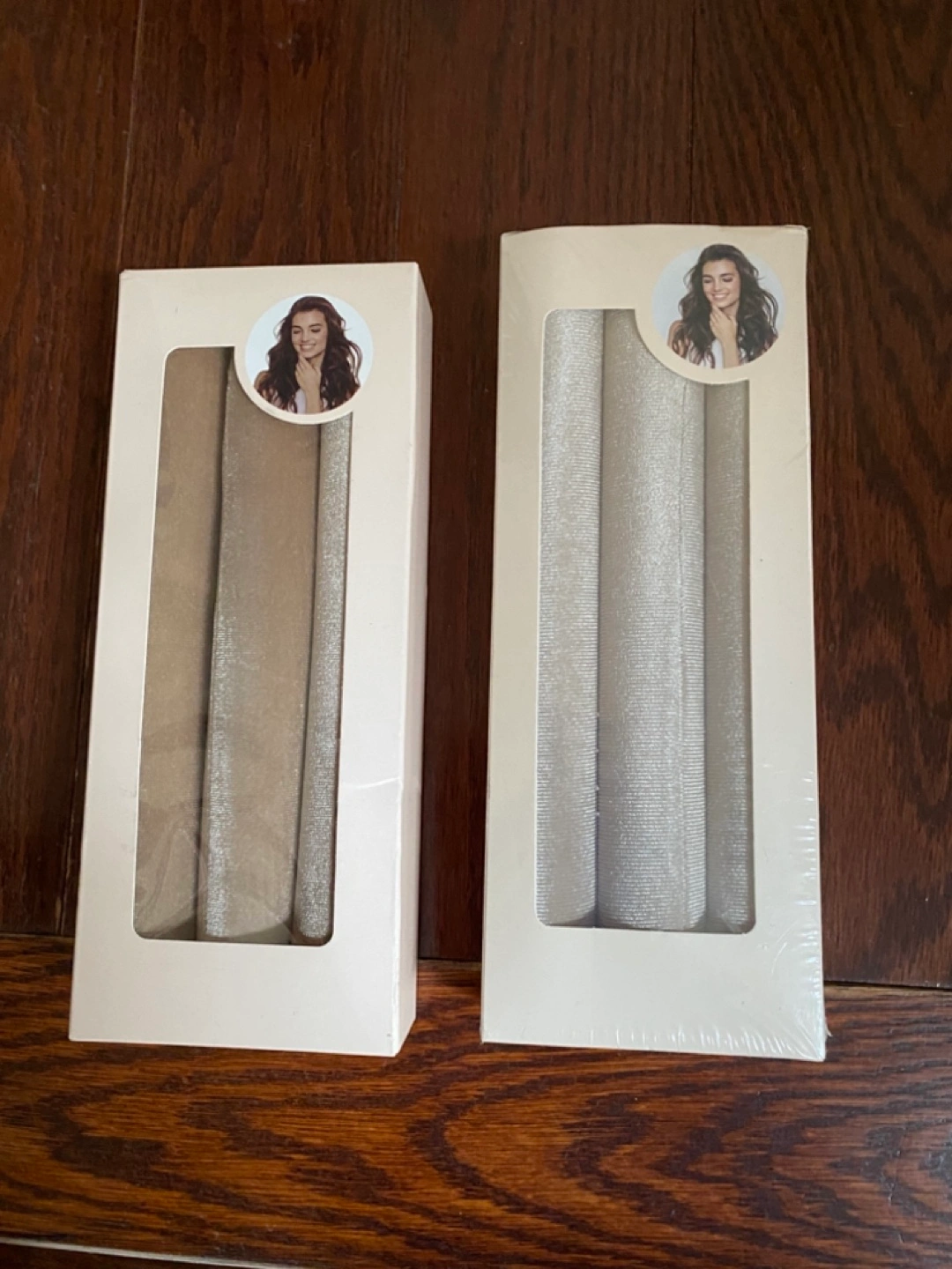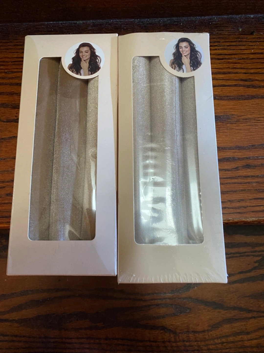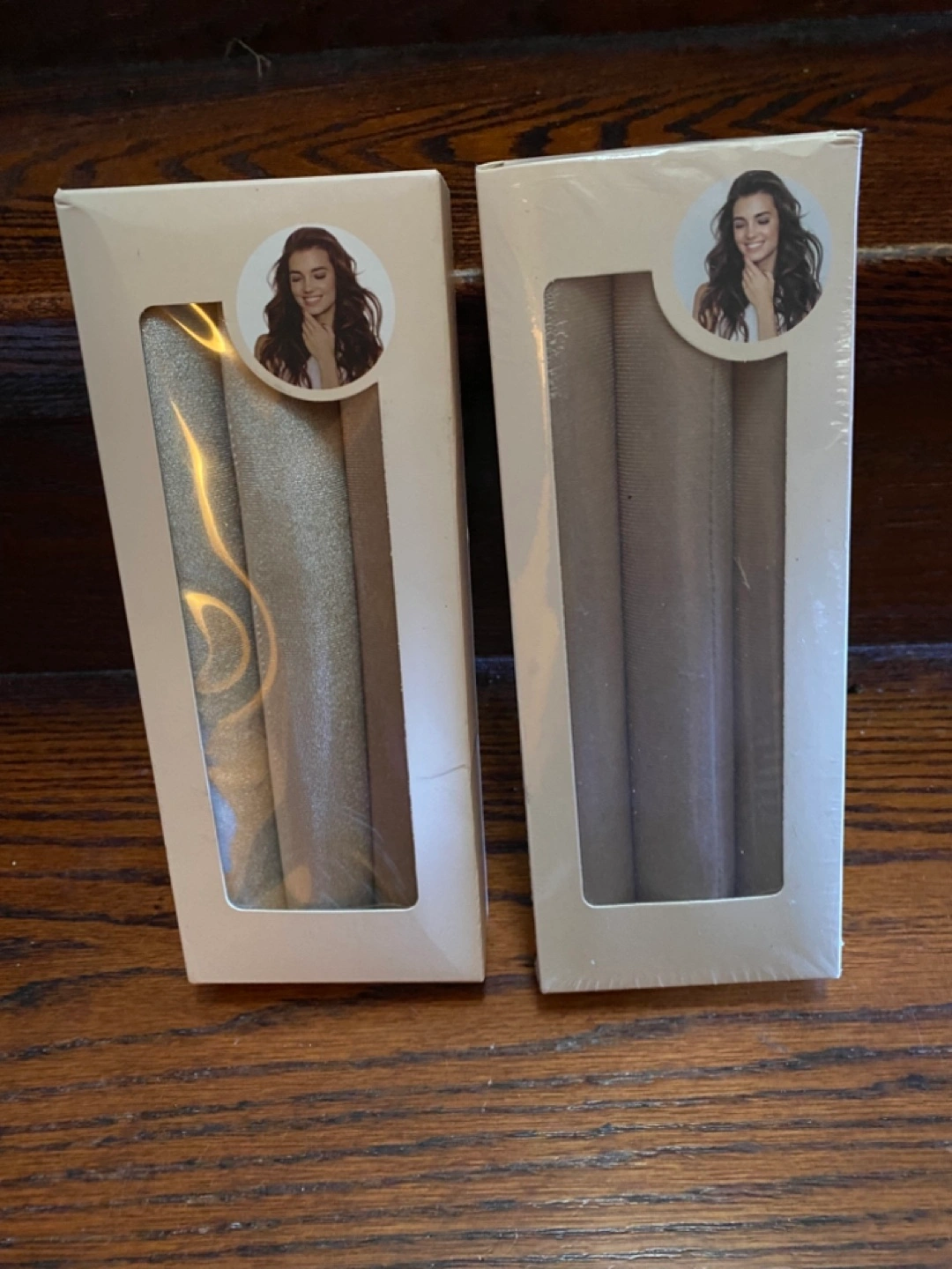 Two heatless curling sets. New in box. One beige, one silver. For healthier, stronger hair. Cash Only