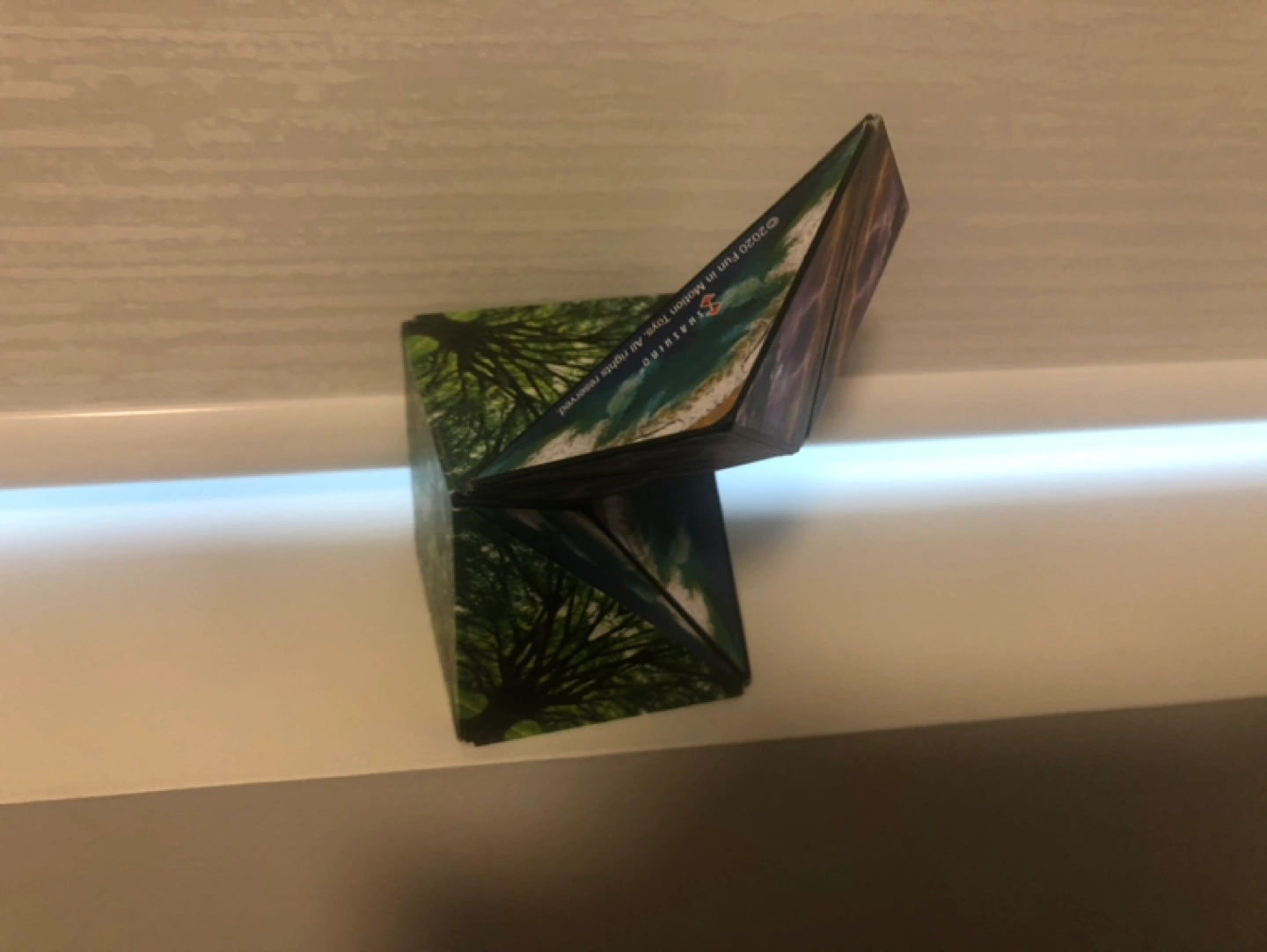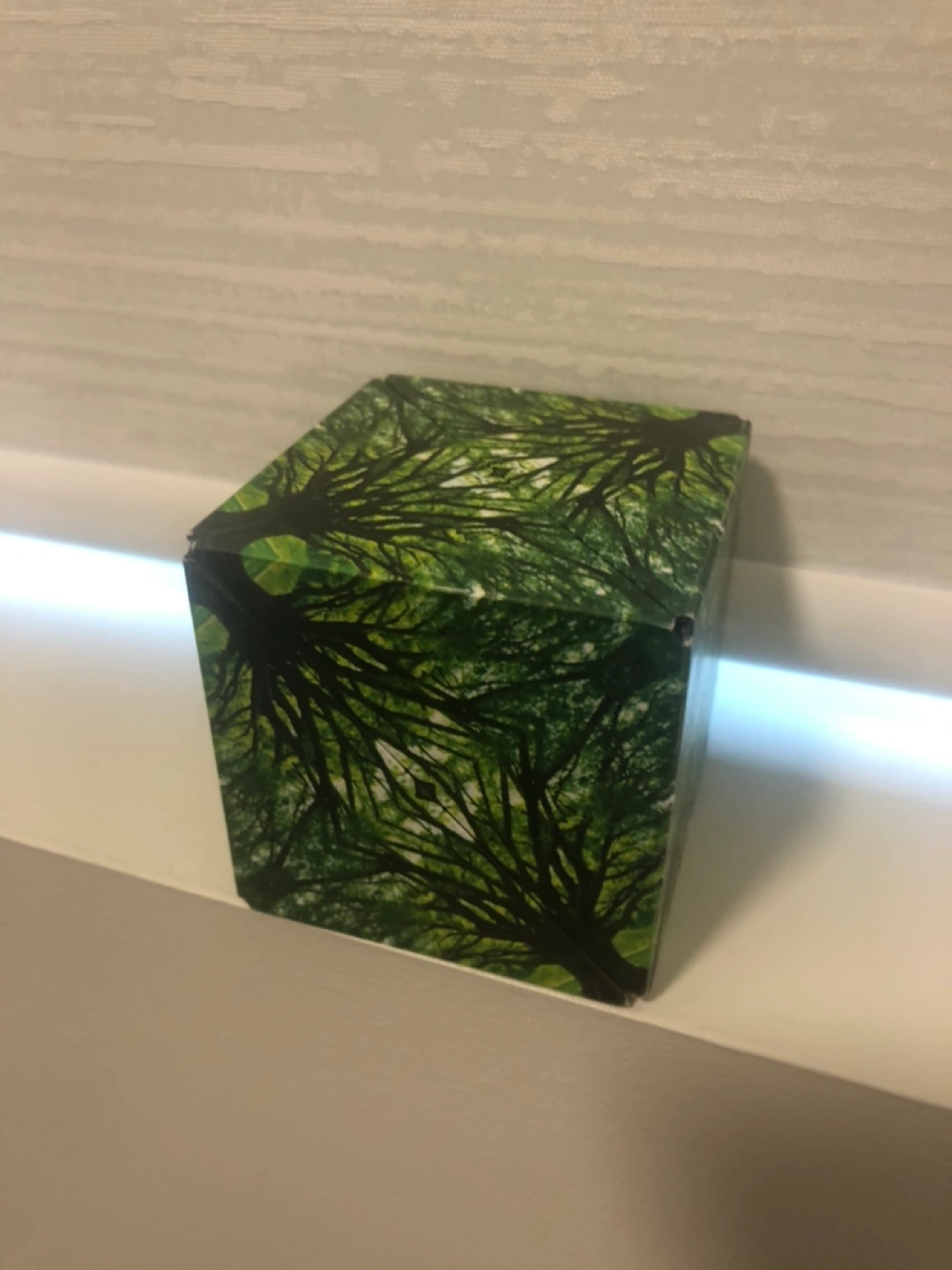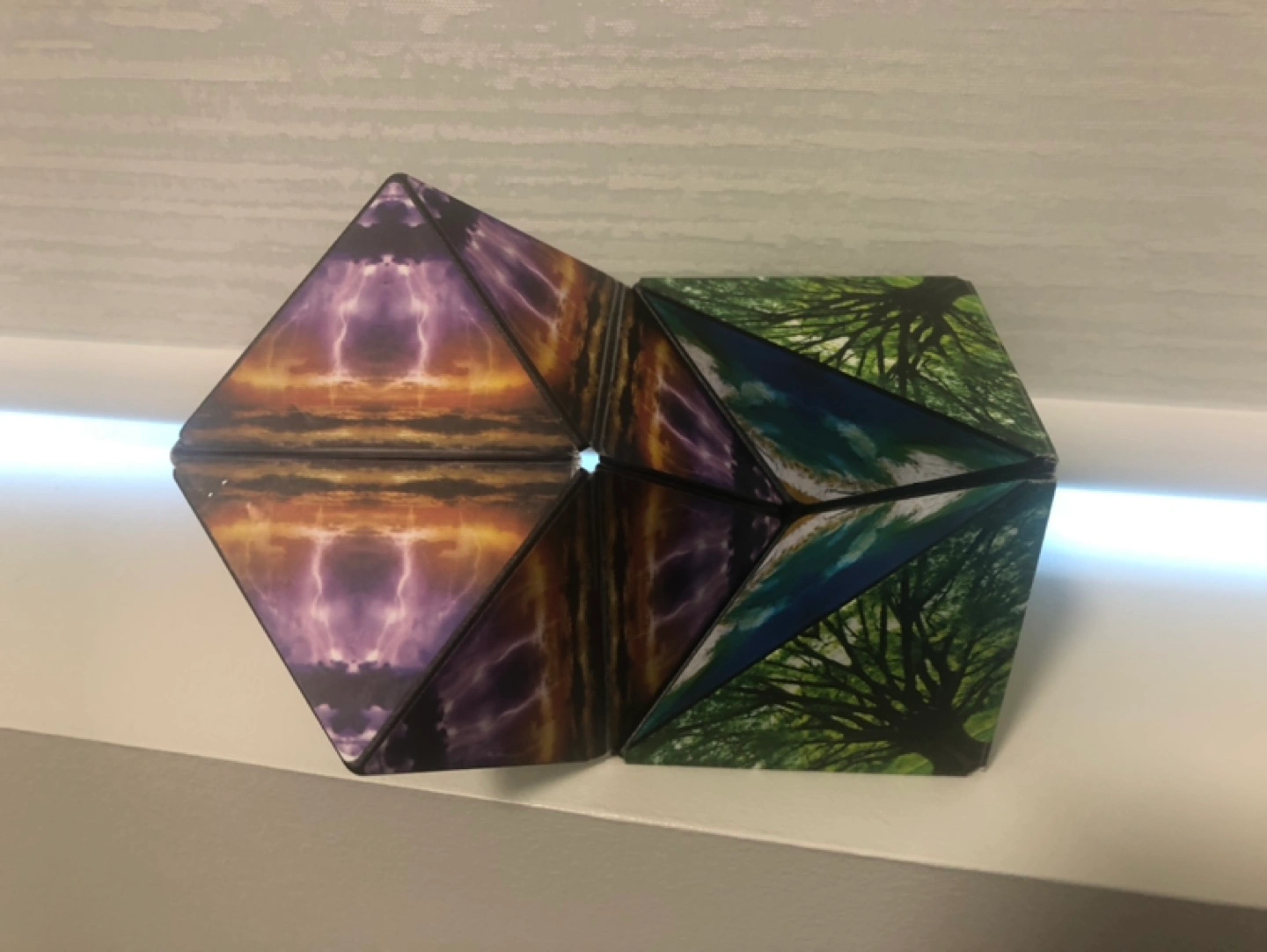 3D transforming Shashibo puzzle cube. This cube has the nature theme featuring trees, lightning, beaches and a cool design, Unique and fun brain teaser. Great gift. Over 75 diffrent shapes possible to make.