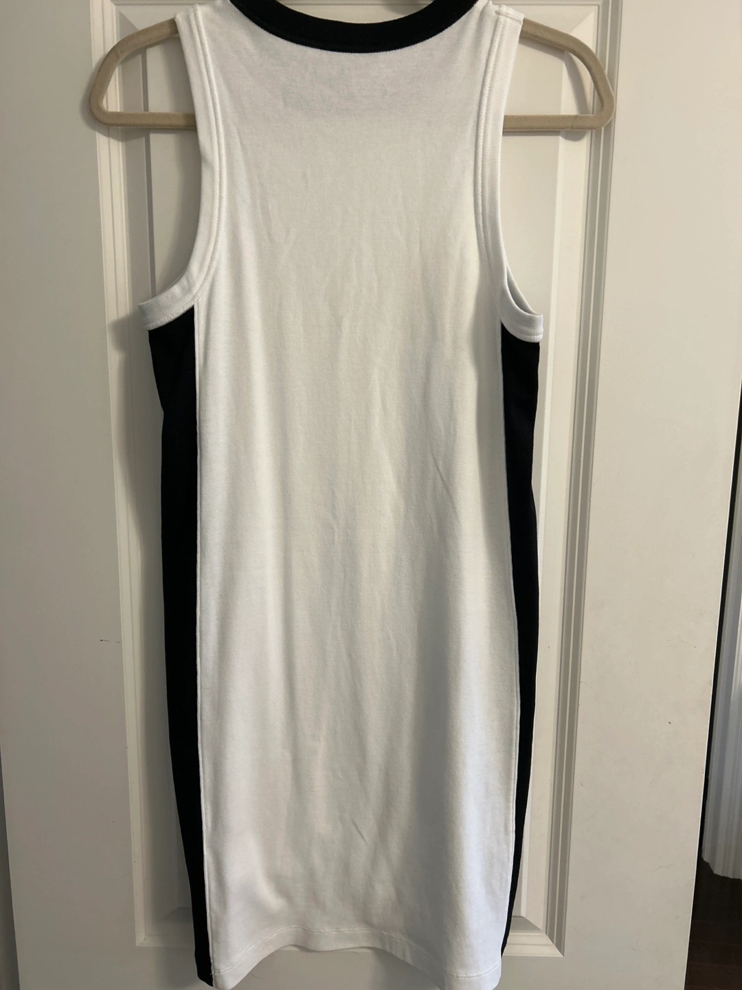 Women's sleeveless white cotton with black side panels dress Crew neck. Excellent condition. New without tags. 100% cotton. Pit to pit: 15.5”. Length: 36”.