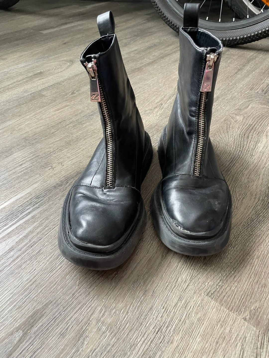 Buy & SellZara Black Leather Zip-Up Boots - Size 37Zara Black Leather Zip-Up Boots - Size 37FreeWomen's black leather ankle boots. Front zip closure. Chunky platform sole. Size 37.ConditionOkaySize37BrandZaraWHERE TO MEET289 Edison AveView MapSELLERNikaRossmere A361 review1 chats·1 favorites·12 viewsSEND CHAT TO SELLERHi Nika! I’m interested in your listing.Hi Nika! I’m interested in your listing.Get the Karrot app to chatSign In to chat