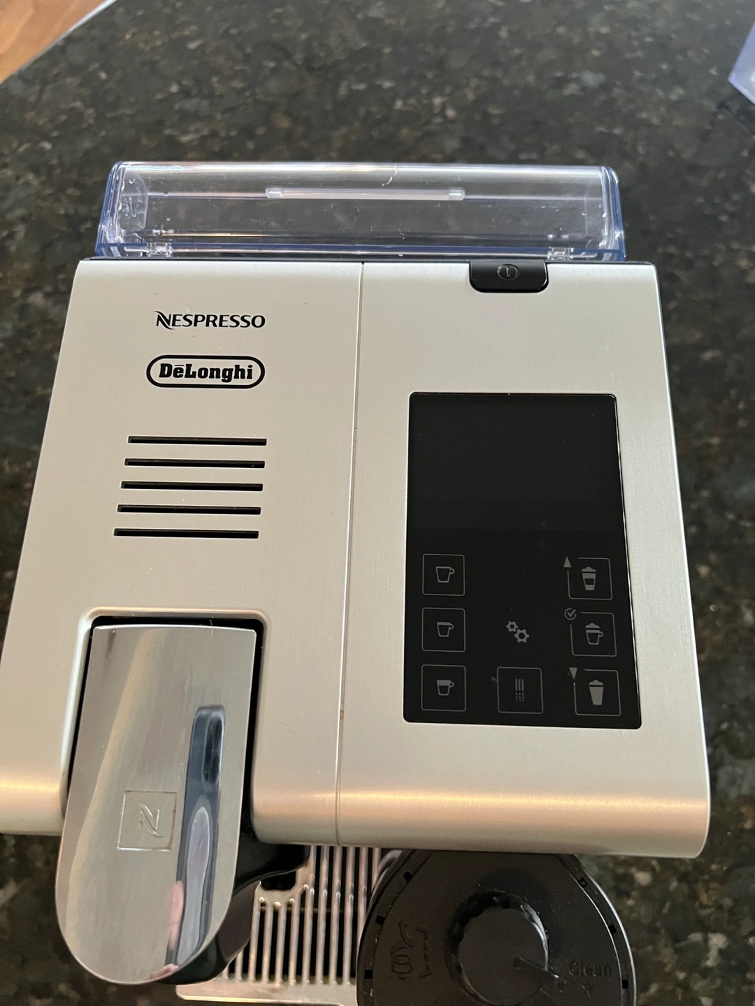 116Nespresso Lattissima Pro Coffee Machine by DeLonghi. _ Made in Italy 10.8’ L x 7.6’ W c 13’ H - Silver Good condition Digital touchscreen, to make espresso, Cappuccino, Latte Macchiato. Hot water spout attachment. Able to adjust milk froth texture, 19 bar pressure, automatic energy saving function switches machine off after 9 minutes. Pick up at Yonge and Sheppard area.