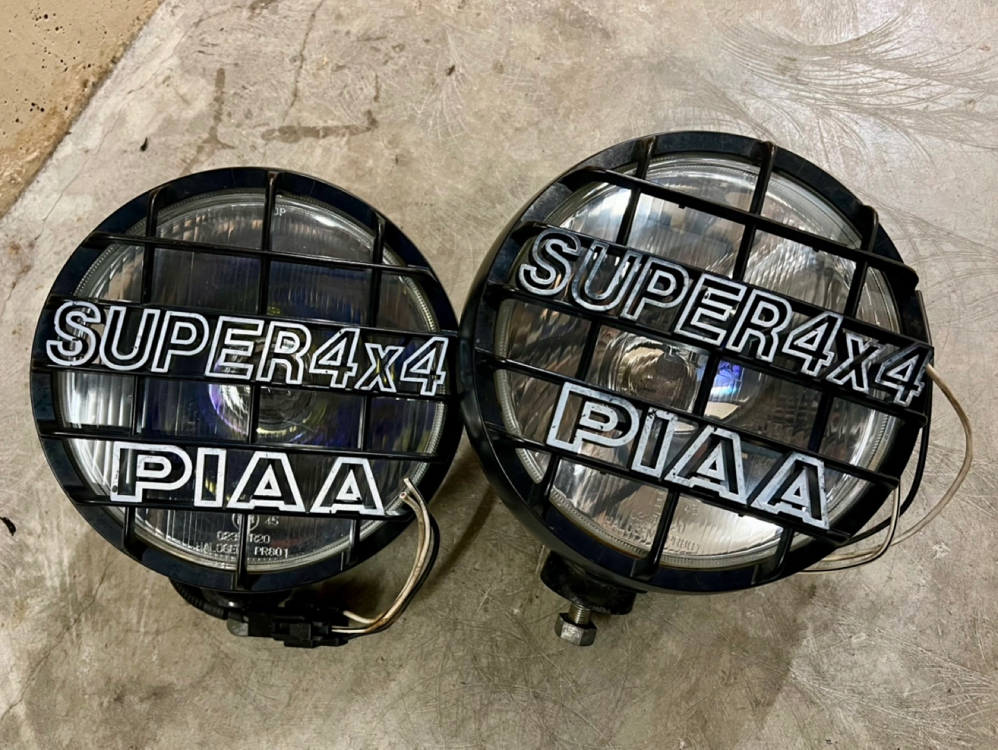 Used pair of PIA Super4x4 off-road driving lights. Halogen bulbs. Includes wiring harnesses. Some wear and tear.