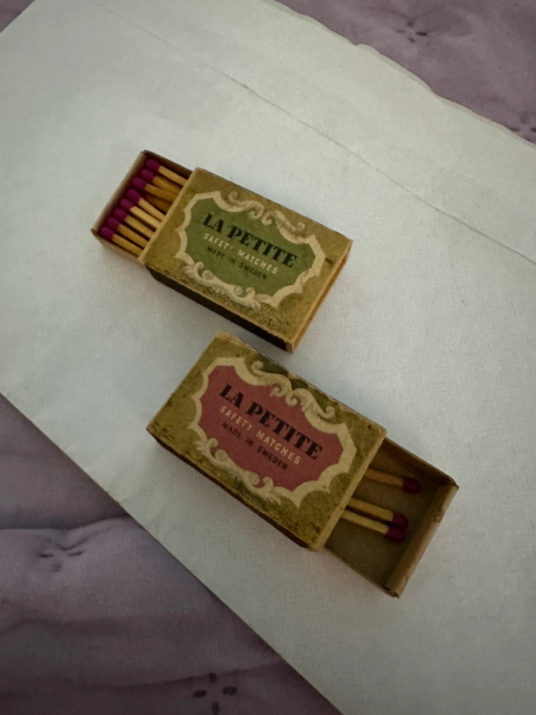 5pc vintage boxes of La Petite safety matches. Made in Sweden. Boxes show age only one been used Matches Collectible.pick up or meet at safe zone at 42pct Bx cash only thank you shipping also