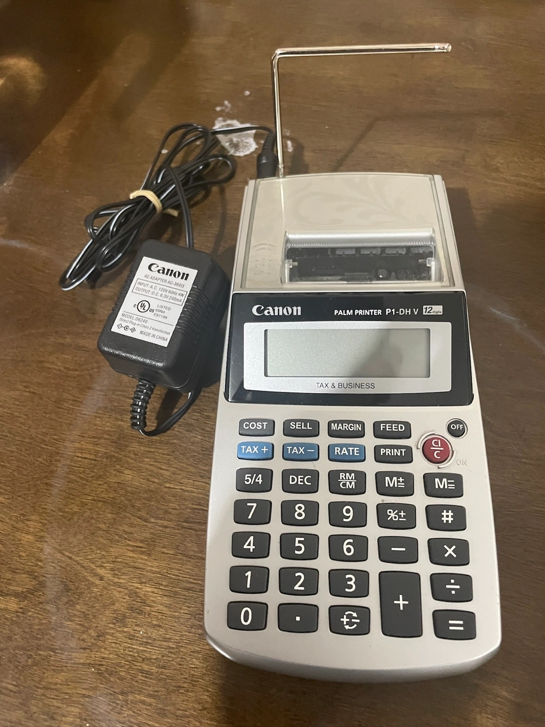 65Portable thermal printer. Includes original canon power adapter. Tax and business functions. Used but new condition.