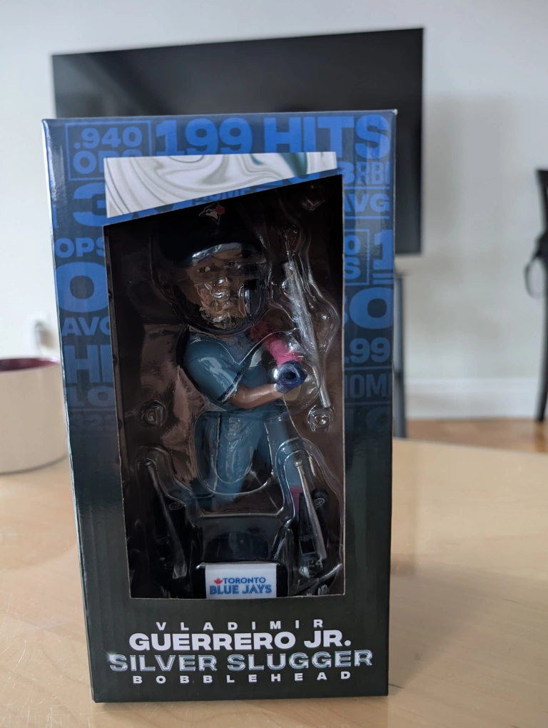Calling all Toronto Blue Jays fans and collectors! Iโm selling a brand-new(with original box) Vladimir Guerrero Jr. Silver Slugger bobblehead.