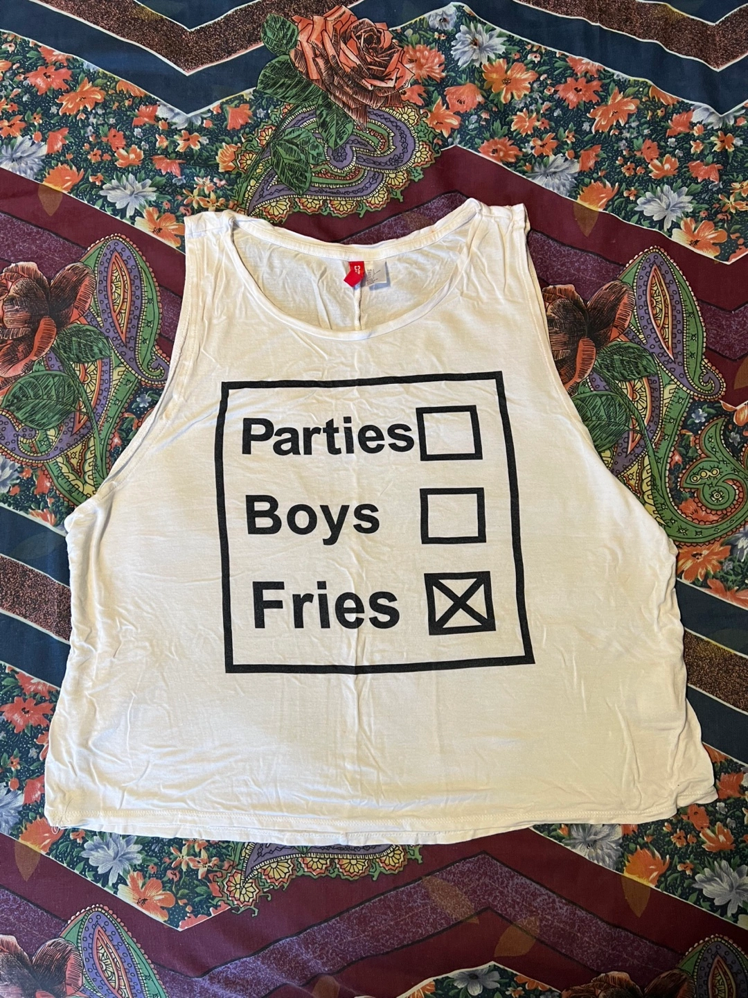 H&M White Crop Tank Top - Parties, Boys, Fries Graphic