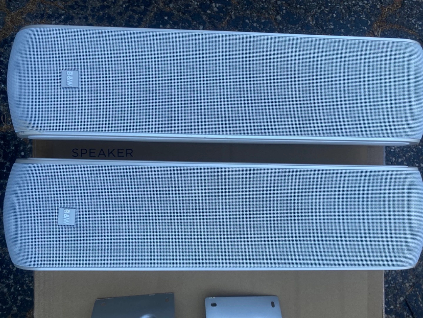 Pair of Atlantic Technology speakers and a pair of B&W speakers. Includes mounting brackets. Good condition.