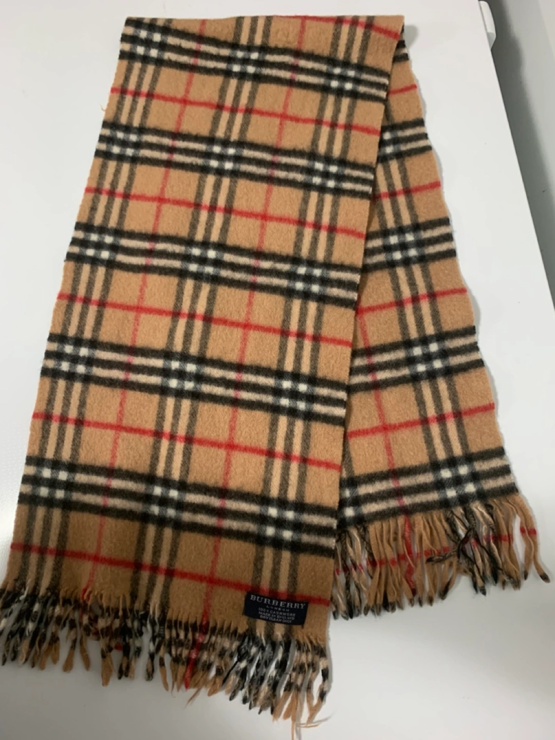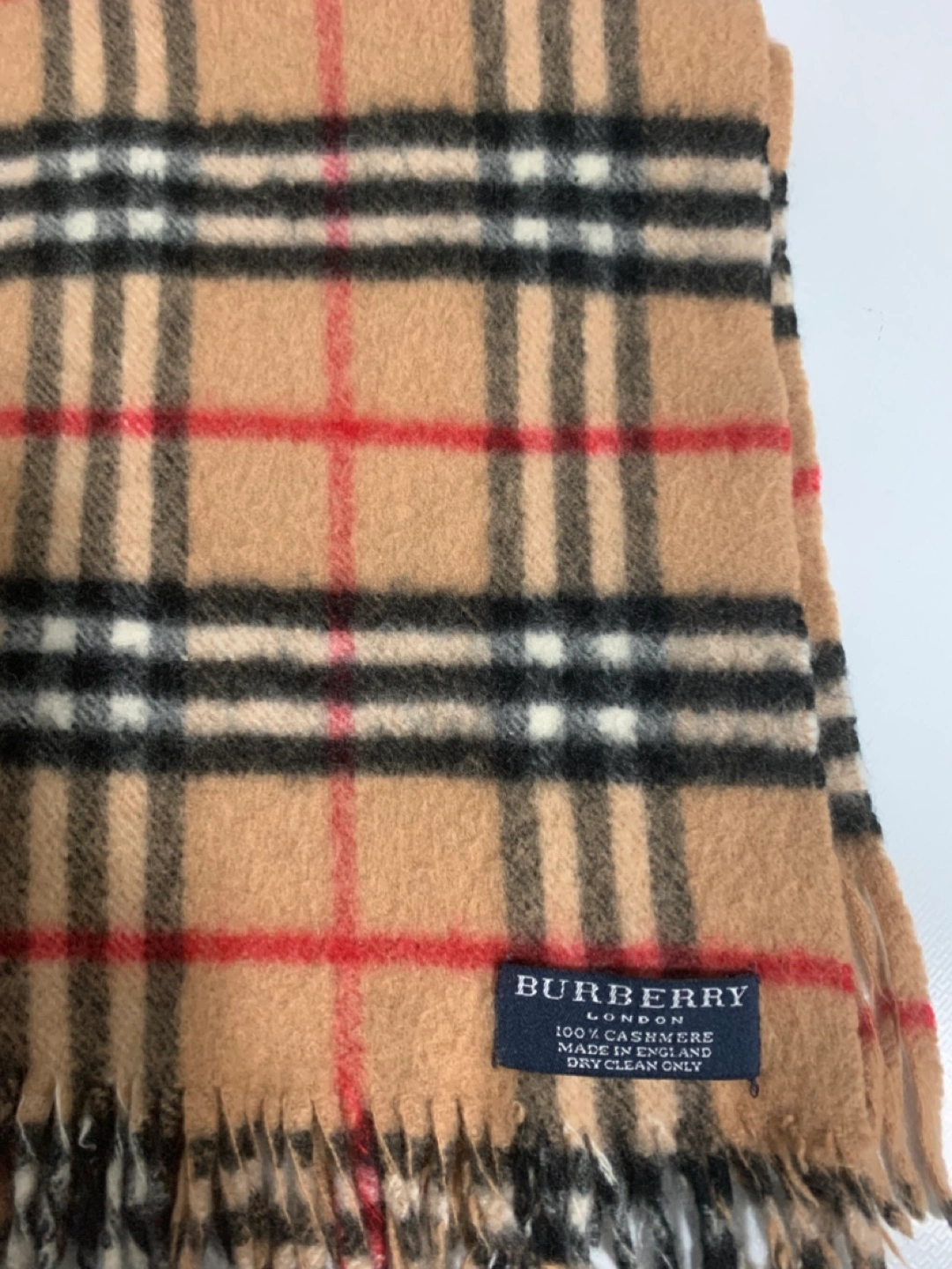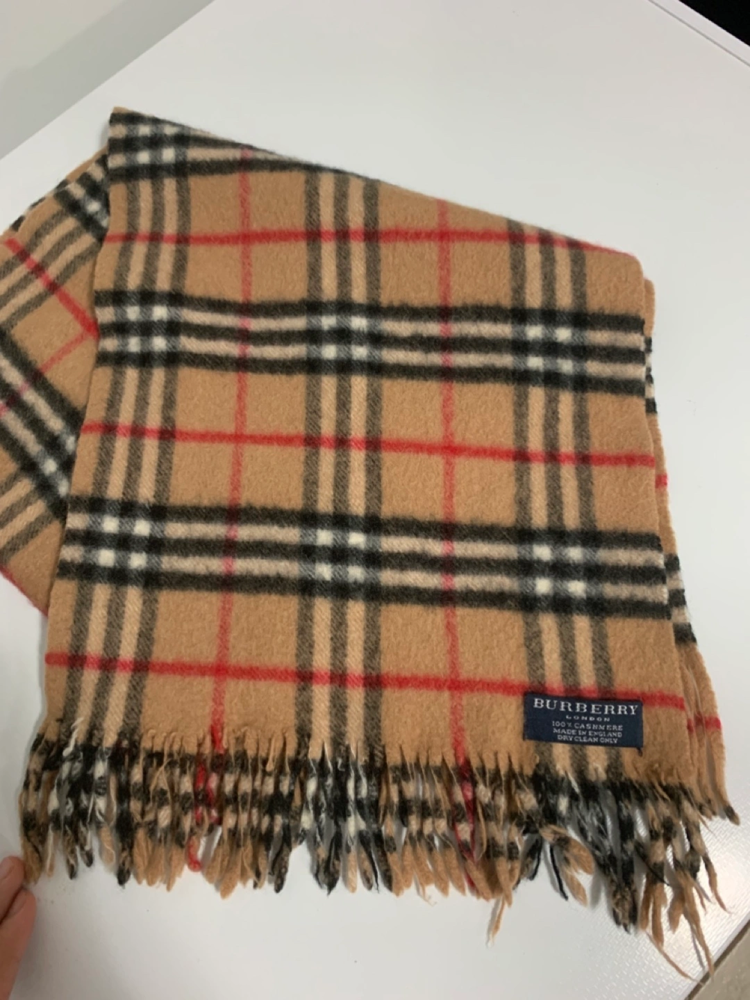163Classic Burberry plaid pattern. Fringed edges. Dry clean only.