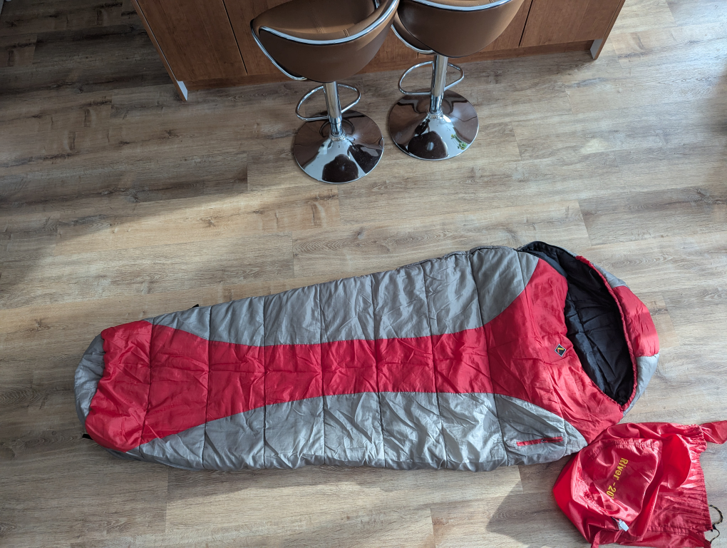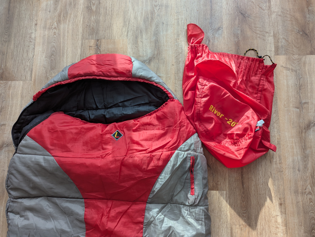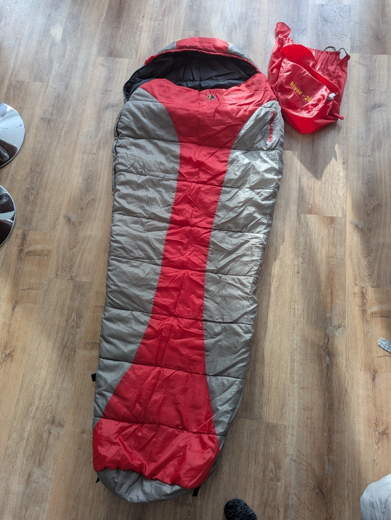 This is a lightly used, clean, River -20° degree sleeping bag, perfect for camping in cooler temperatures. Ready to snuggle up under the stars? This sleeping bag is like a warm hug from Mother Nature herself! If the ad's still up, it's still up for grabs!