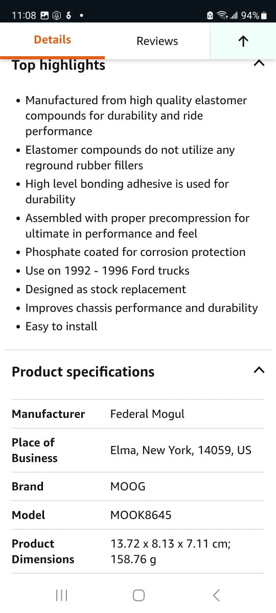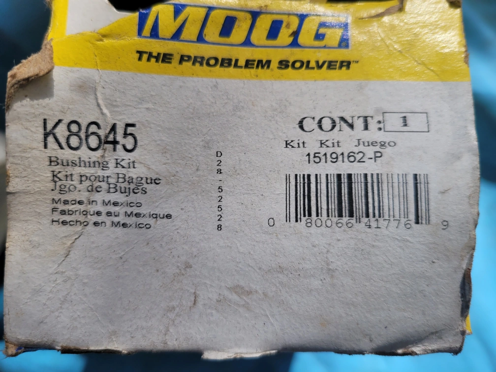New MOOG K8645 bushing kit. Made in Mexico. Includes two bushing kit. Fits various Ford vehicles.