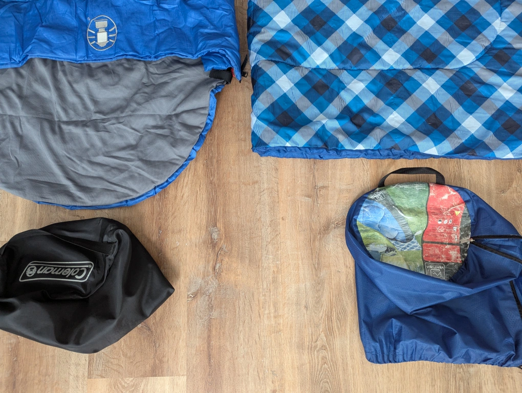 Get ready for your next camping adventure with these sleeping bags, designed to keep you cozy! They come with convenient stuff sacks for easy packing and storage. They are in very good conditions, ready for more outdoor escapades.