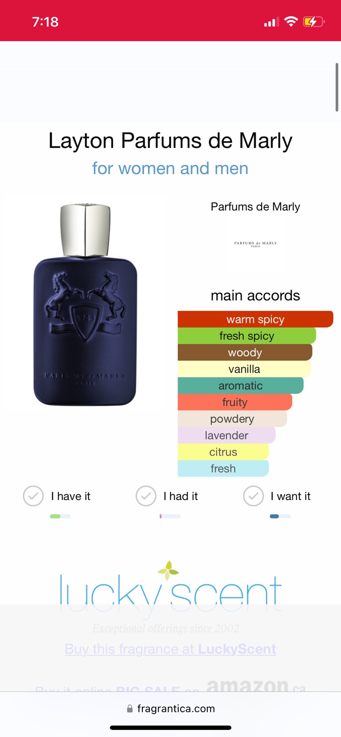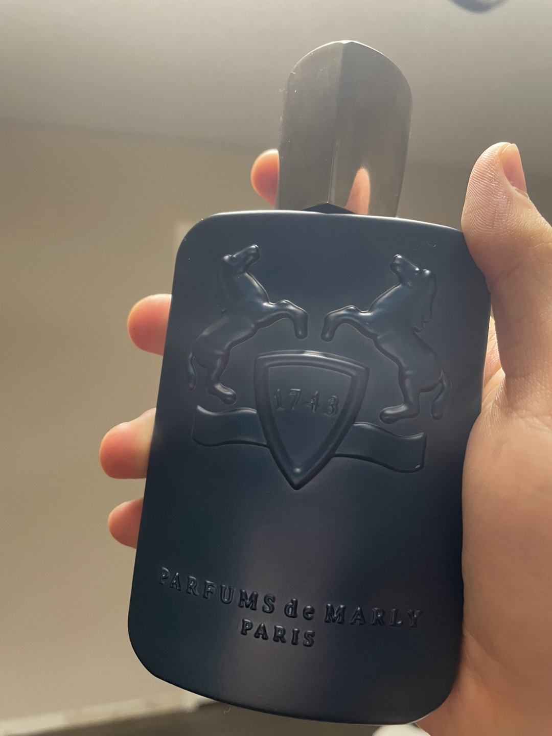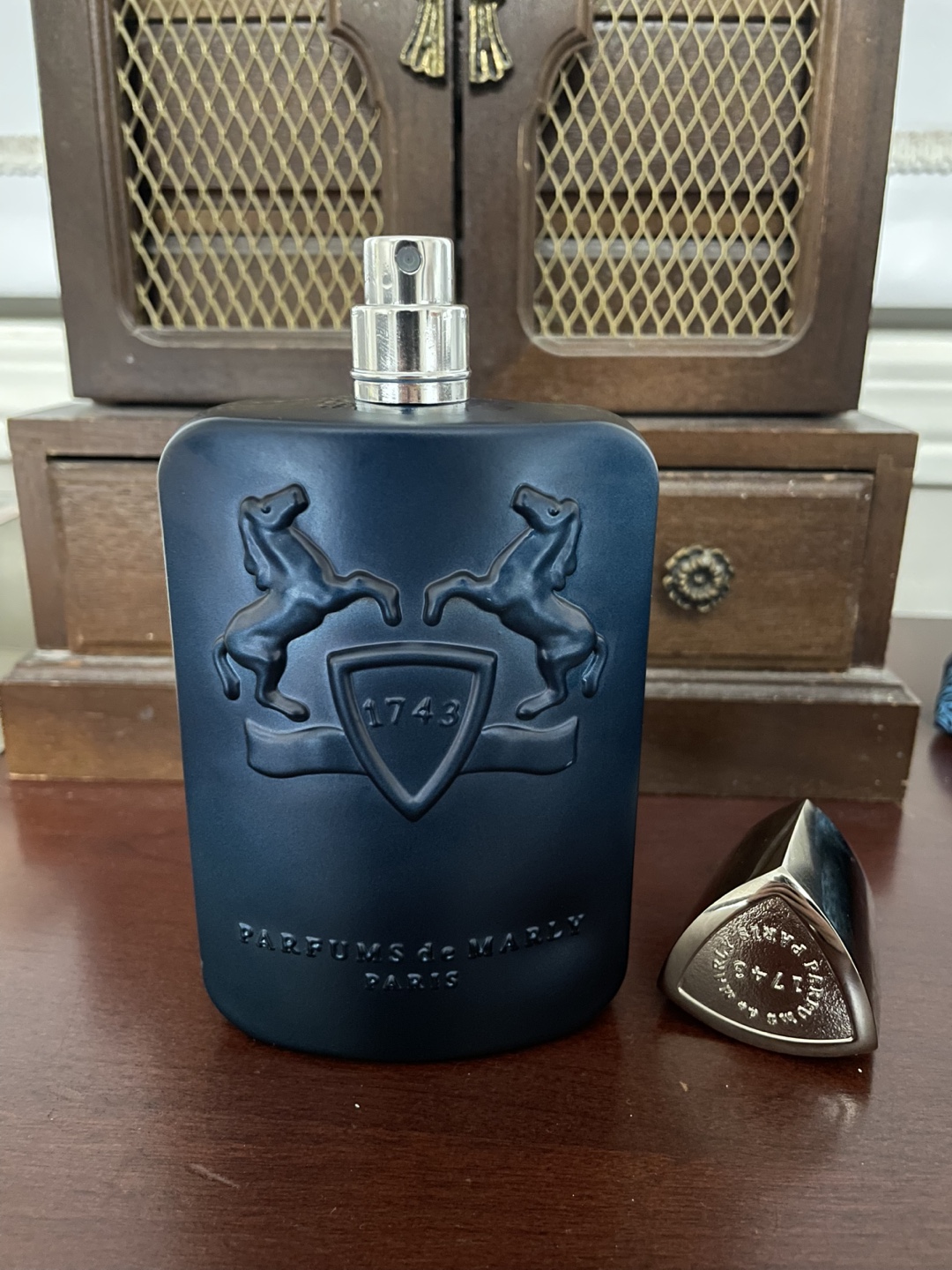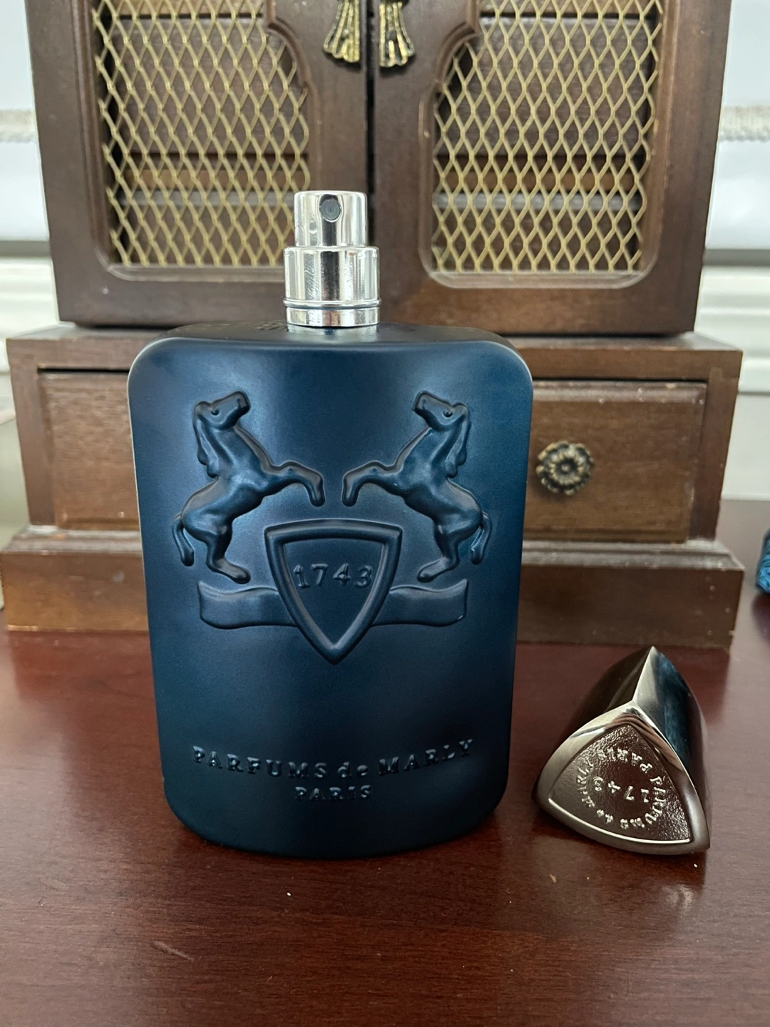 Parfums de Marley Layton perfume for men and women. Unique dark blue bottle. A warm, spicy, woody scent. Excellent condition.