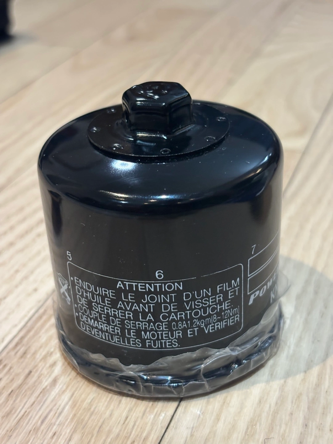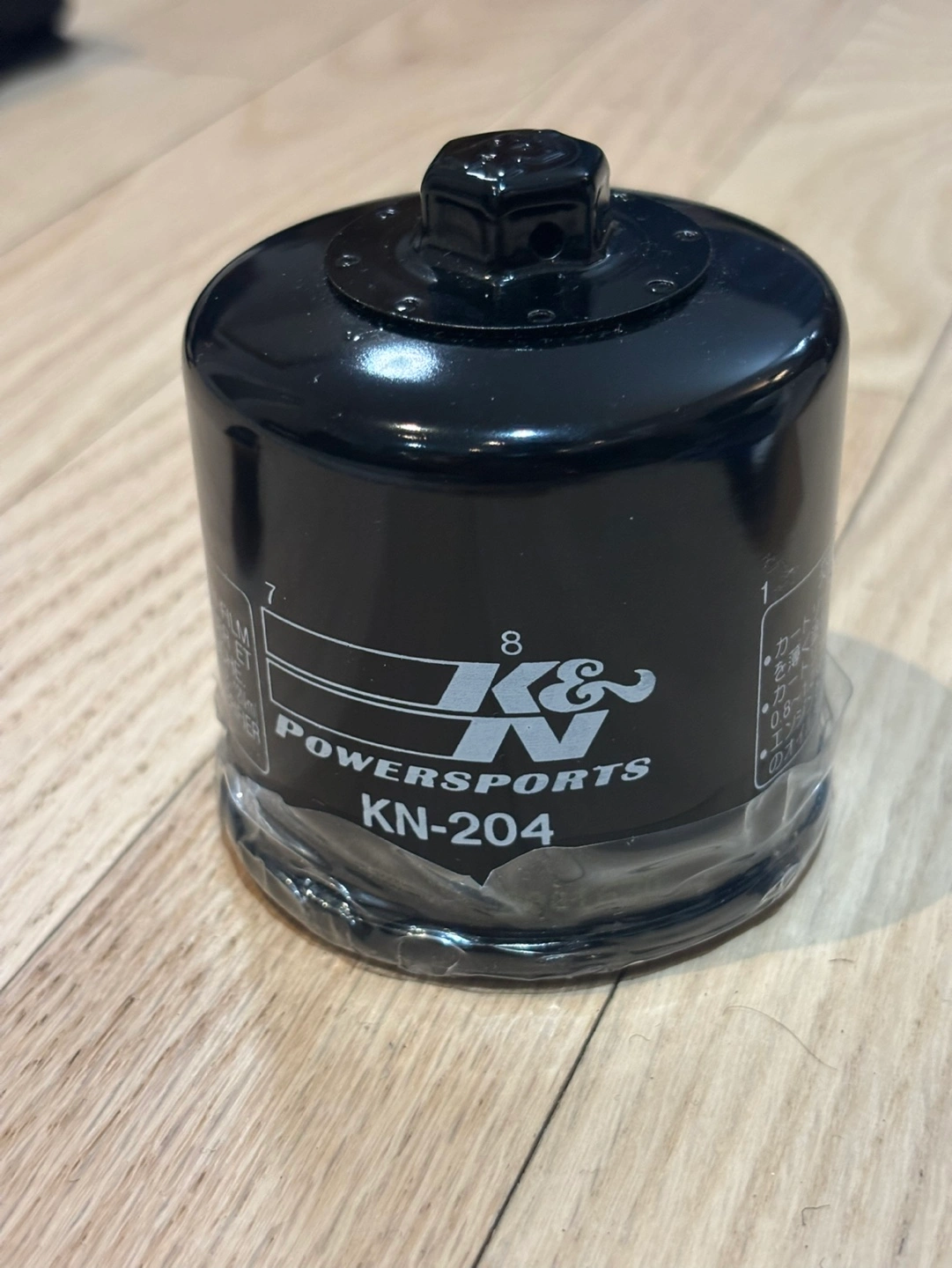 New, unused K&N Powersports oil filter. Model number KN-204. Black, canister-style filter.