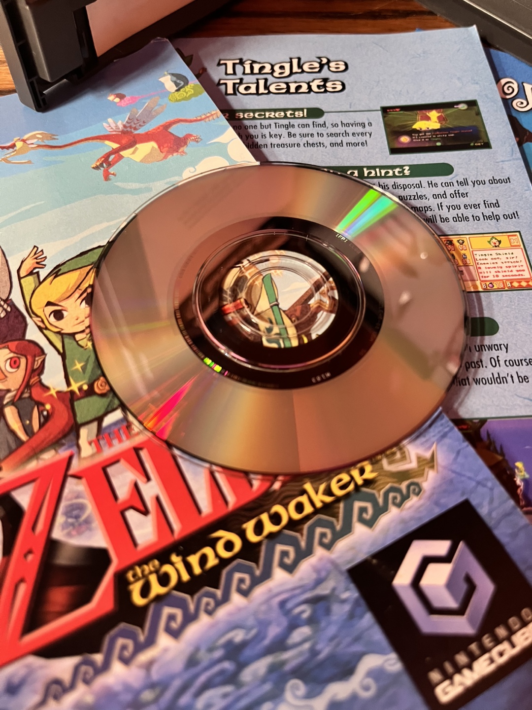 Pre-owned Nintendo GameCube game. Includes game disc, instruction booklet, and Tingle's secrets booklet. Game case shows some wear. You can see in the photo some slight ripple in the cover art on the front. Not too bad, no moisture staining, but it does have some ripple there, letting it be known for those who are extra picky.