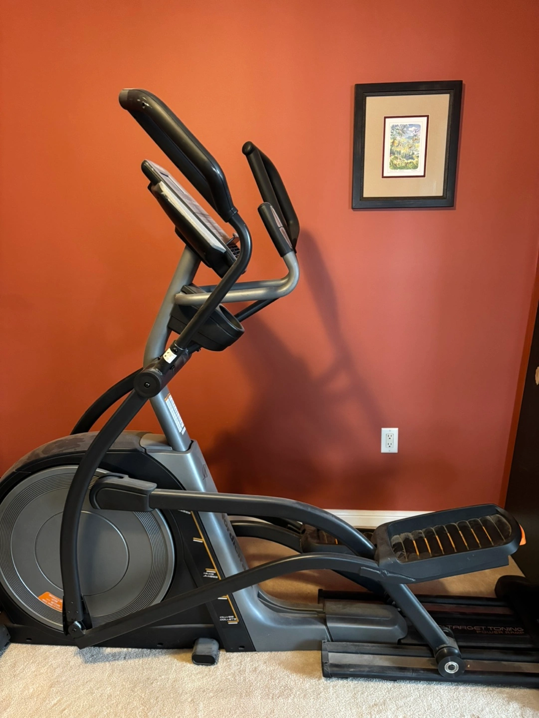 Excellent condition elliptical cross trainer. iFit compatible. 16 workout programs. Adjustable resistance and power ramp. Includes console and foot pedals. Great for home workouts - used no more than 5 times!